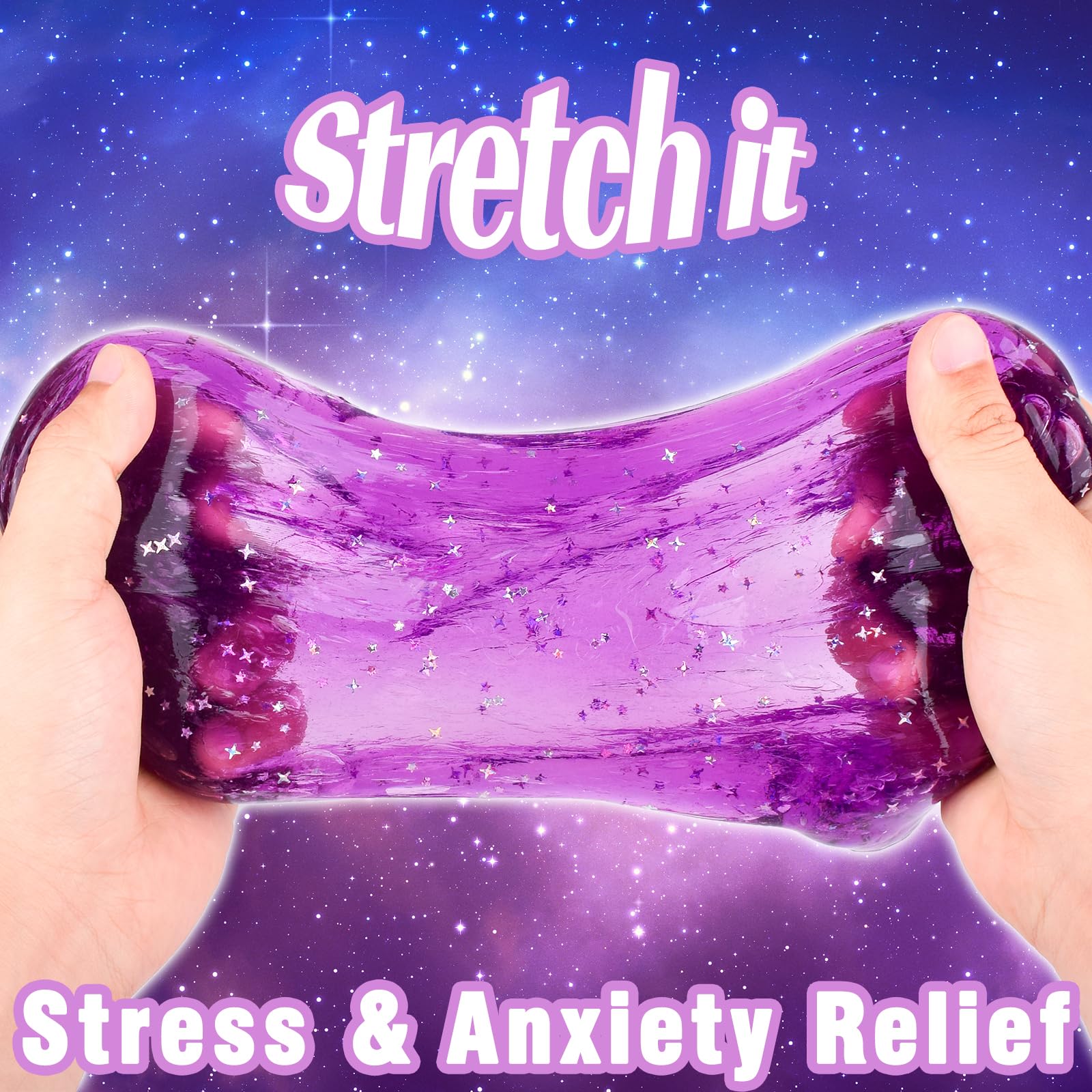 24 Pack Purple Galaxy Star Slime, Party Favor for Girls & Boys, Mini Glitter Galaxy Slime Cup, Wet,Soft and Non Sticky, Stress &