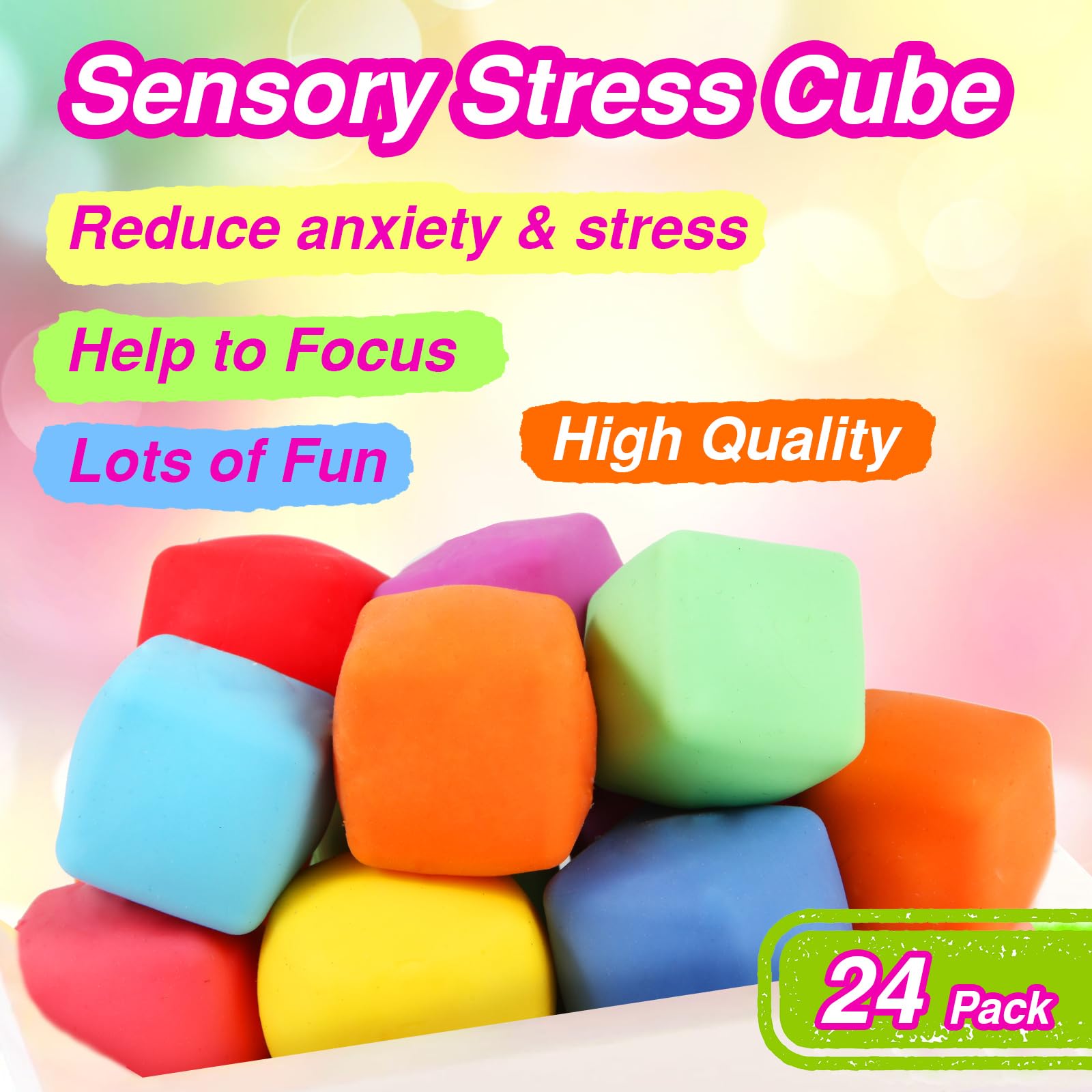 24 Pack Slow Rising Stress Cube , Dough Stress Balls Soft Fidget Squishy Toys for Anxiety Relief, Pull Stretch Classroom Prize P