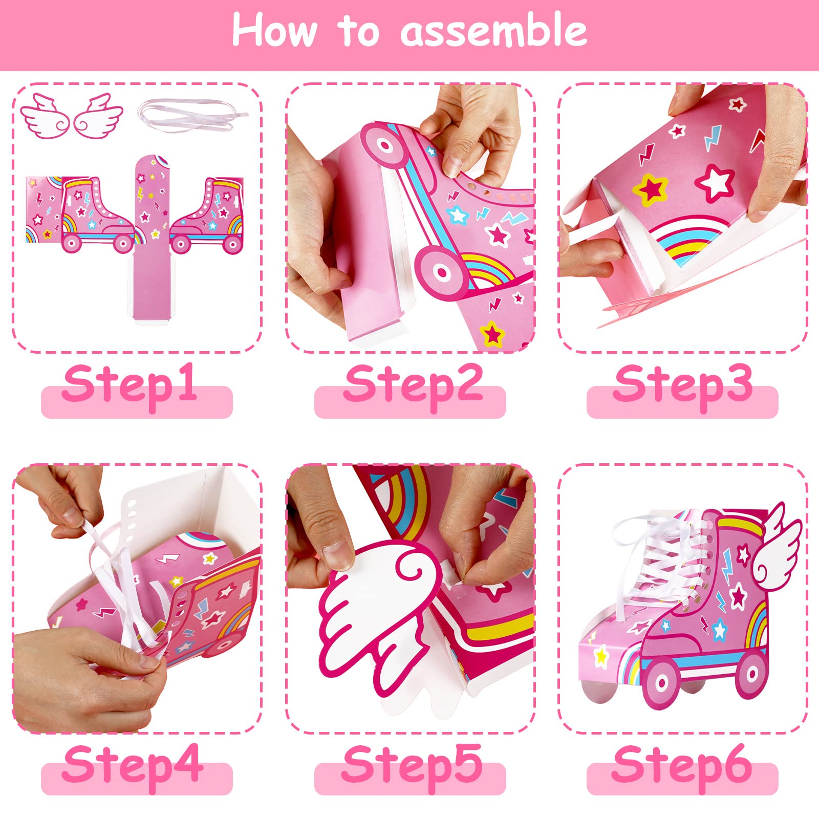 - Q: Are these party favor boxes easy to assemble? A: Yes, the roller skate treat boxes are shipped flat for protection and can be easily assembled following the included instructions. The package also comes with shoelace ropes to enhance the DIY experience.