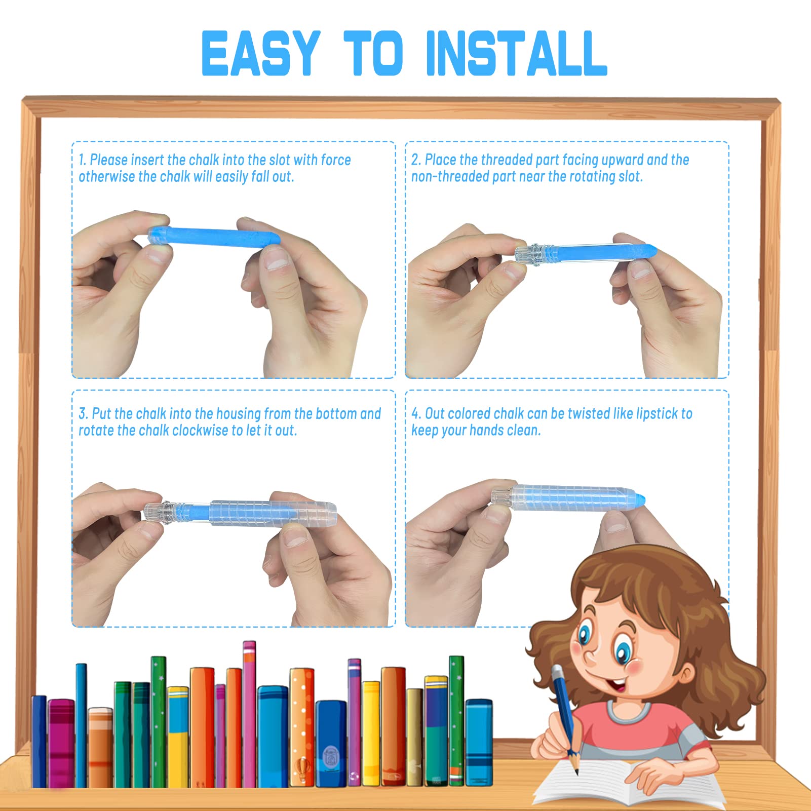 Specification: Name: Dust-Free Chalk Quantity: 24 Multi-Color Chalks With Pen Holder Size: 1.1 * 4Inch Feature: 1. Washable Chalk! Easy To Clean! No Need To Worry About Chalk Marks On Glass,Table And Clothes. 2. Our Chalk With Holder, Protects Your Hands From Direct Contact With Chalk Avoiding Drying And Cracking Caused Chalk. 3. Not Easy To Break, Chalk Writes Well, Offering Clear And Distinct Lines On Chalkboards. It Can Be Easy Wiped By Wet Towel. 4. Sidewalk Chalk Are Made With Nothing But The Finest Materials, And Are Completely Safe For You And Your Family. 5. Good For Home Office Blackboard, Greenboard For Boys Girls Children Writing, Drawings, Doodling.