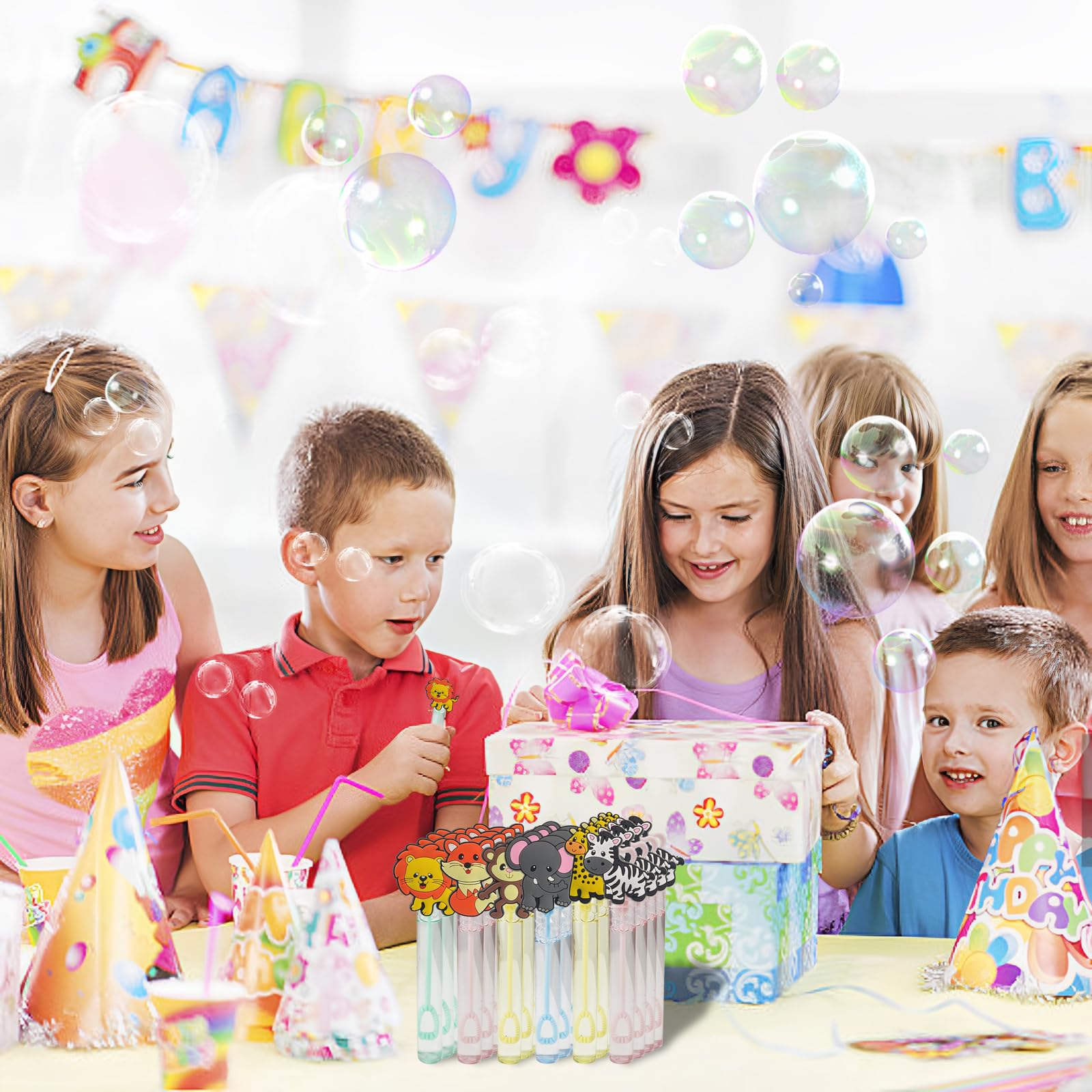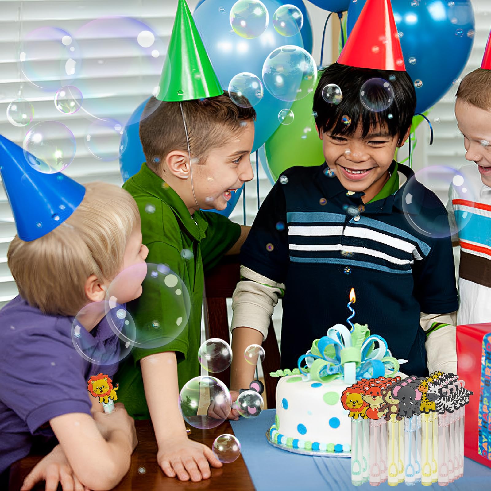 - Q: What kind of events are these bubble wands ideal for? A: These bubble wands are great for various events such as birthday parties, jungle-themed parties, school classroom activities, and as party favors in goodie bags or pinatas.