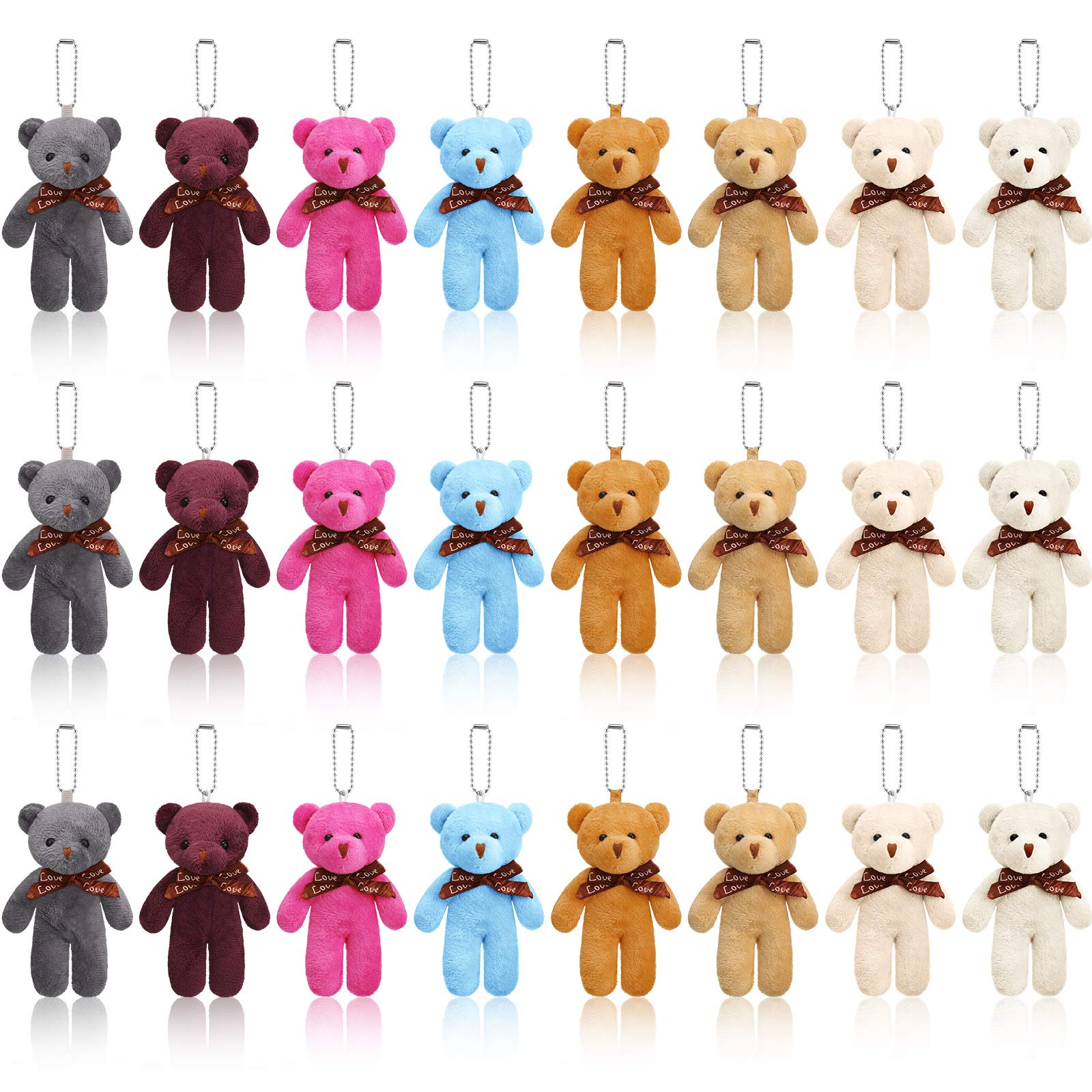 24 Pieces Mini Bears 4.7 Inch Tiny Bears Doll Bulk Soft Mini Stuffed Animals For Diy Keychain For Graduation Birthday Baby Shower Wedding Party Favors (Bright Colors, Classic Style)