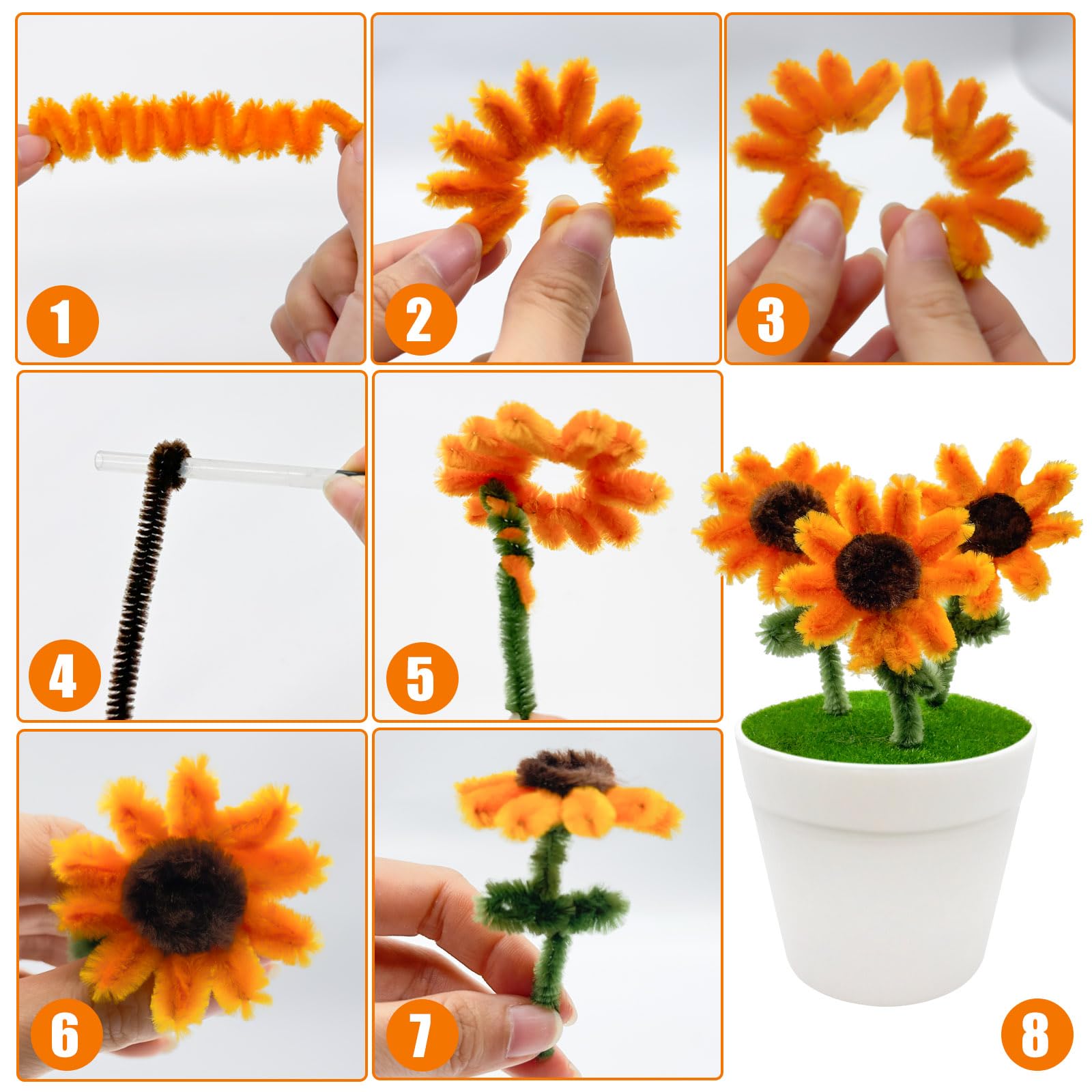 24 Set Garden Pot Craft Kit DIY Sunflower Plant Crafts Pot with Pipe Cleaners Stickers Fall Craft Kit for Fall Thanksgiving Autu