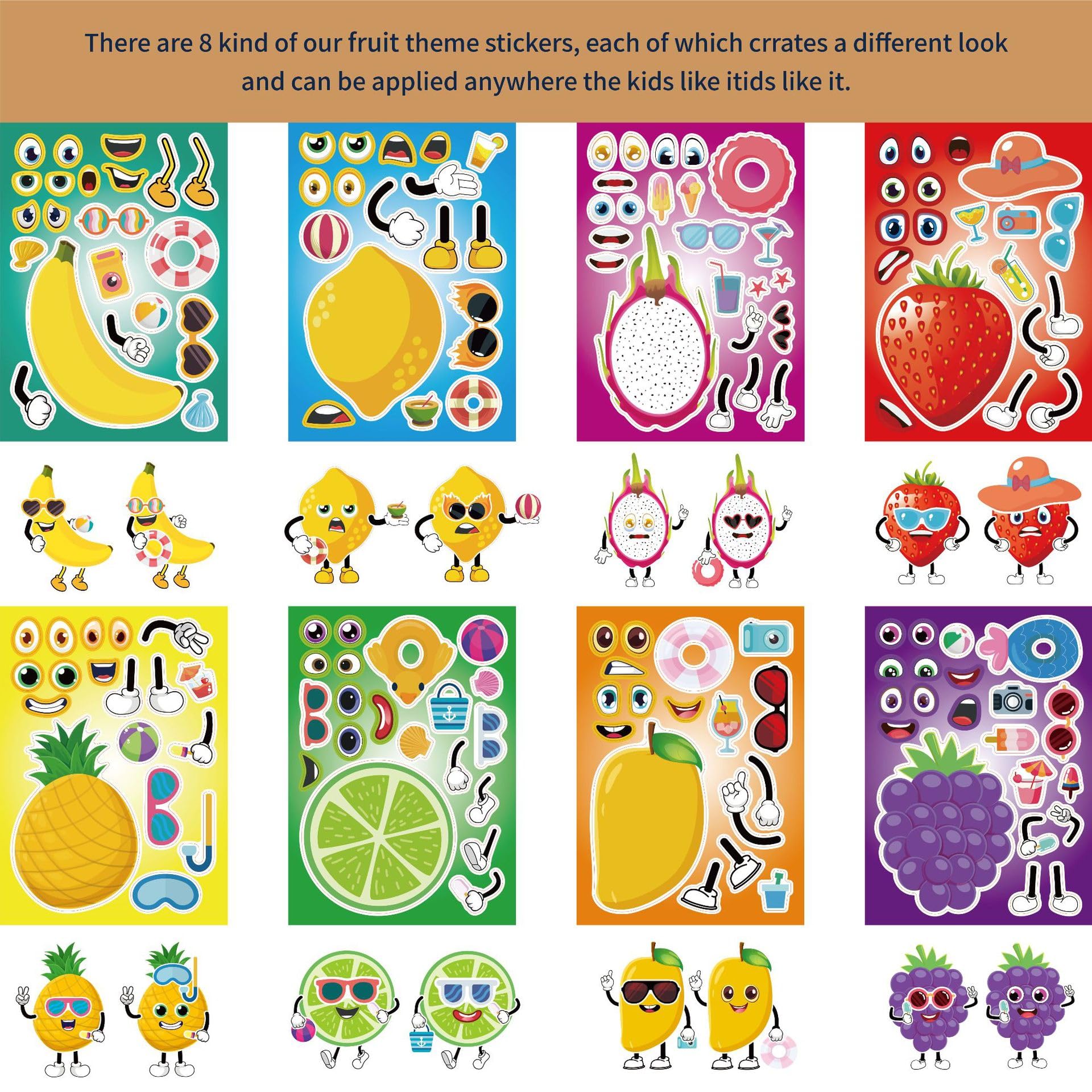 24 Sheets Make Your Own Fruit Stickers Make A Face Stickers For Kids Toddlers With Cartoon Fruit Summer Hawaii Theme Characters