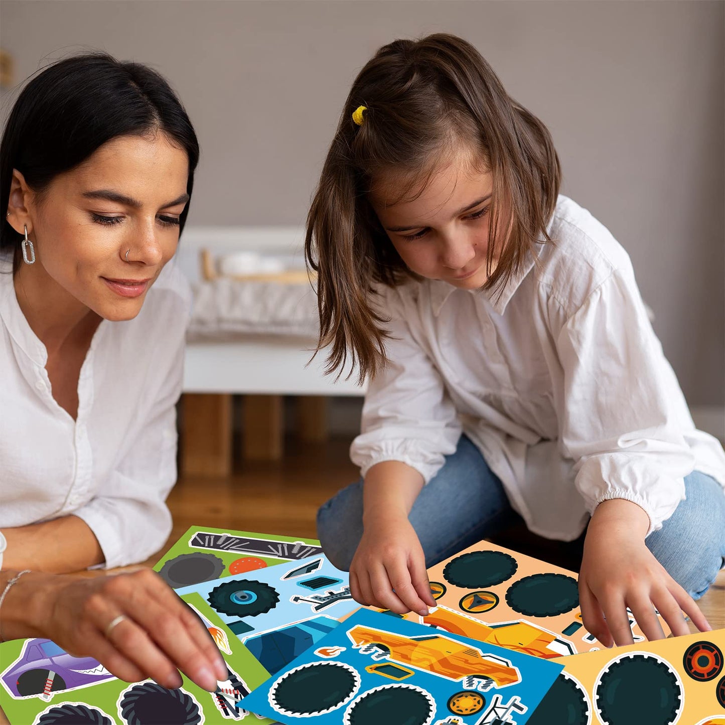 24 Sheets Monster Truck Make A Face Sticker Sheets For Kids Todders Activities, Make Your Own Stickers For Kids Birthday Party F