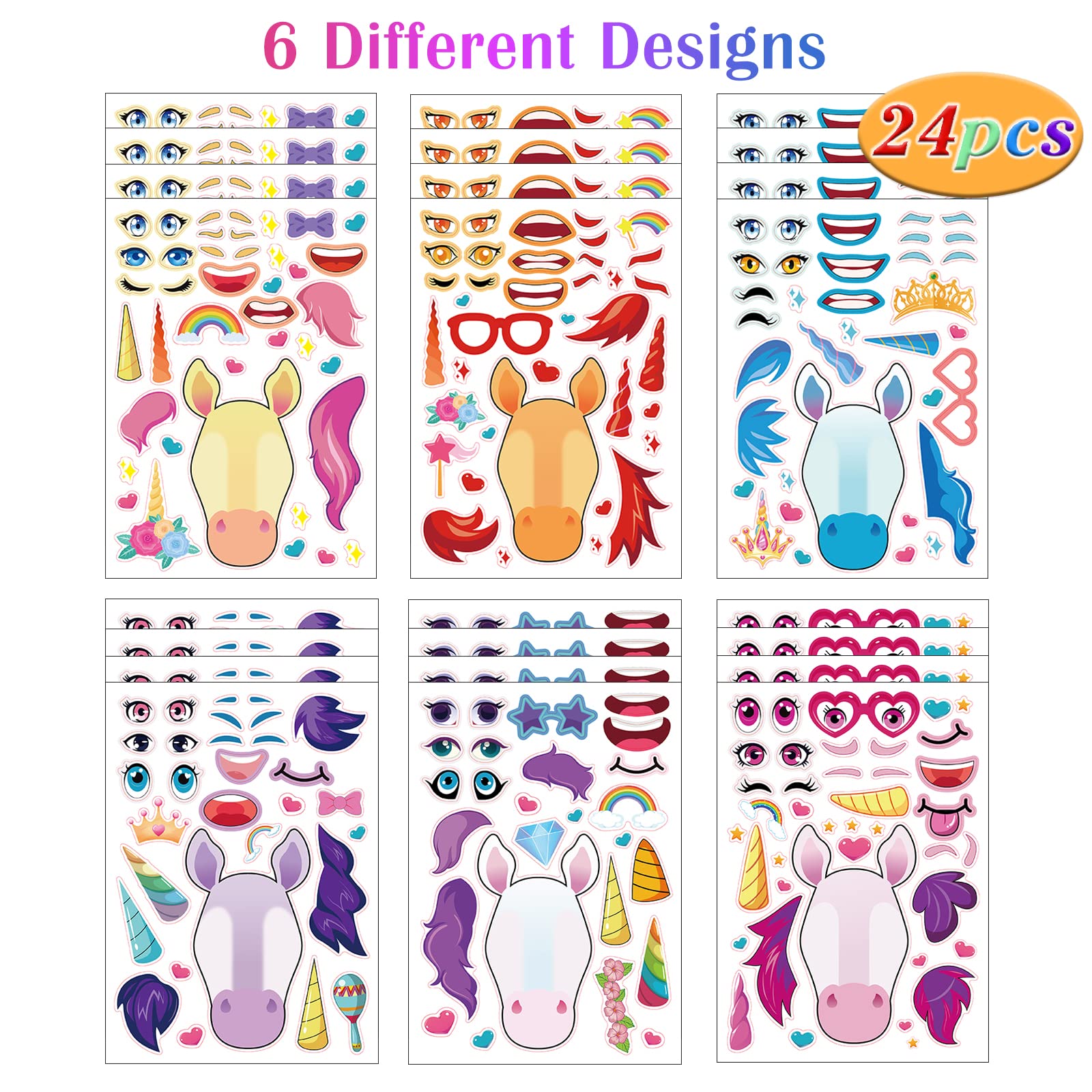 - Q: Can I use these stickers for party favors? A: Absolutely! The Unicorns Make a Face Sticker Sheets are perfect for party favors. With 24 sheets featuring 6 different designs, they can be shared among friends at birthday parties, classrooms, or group activities.