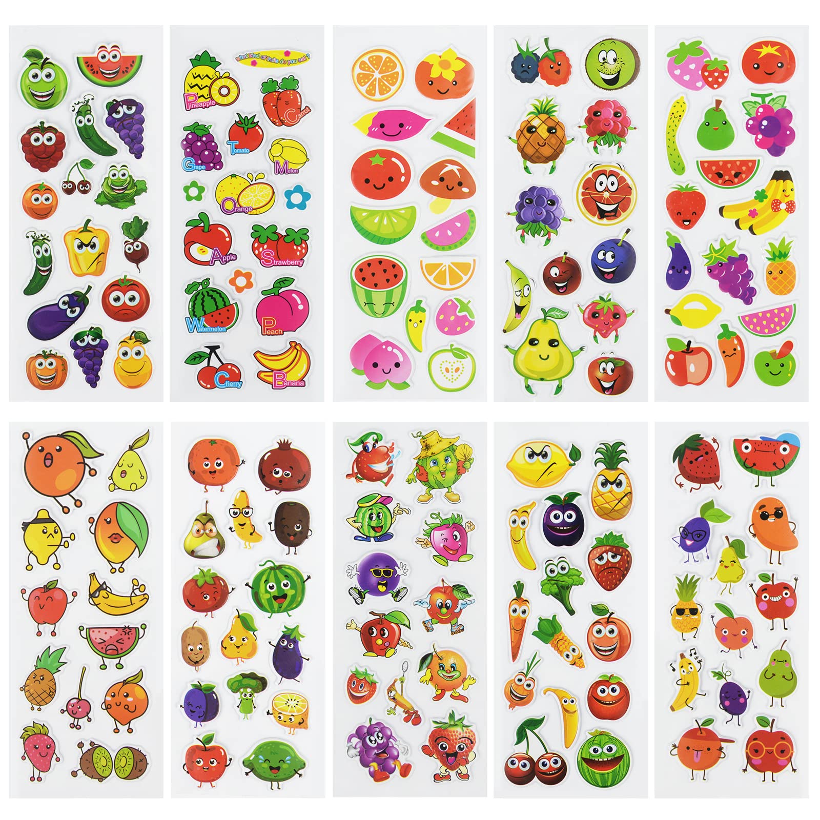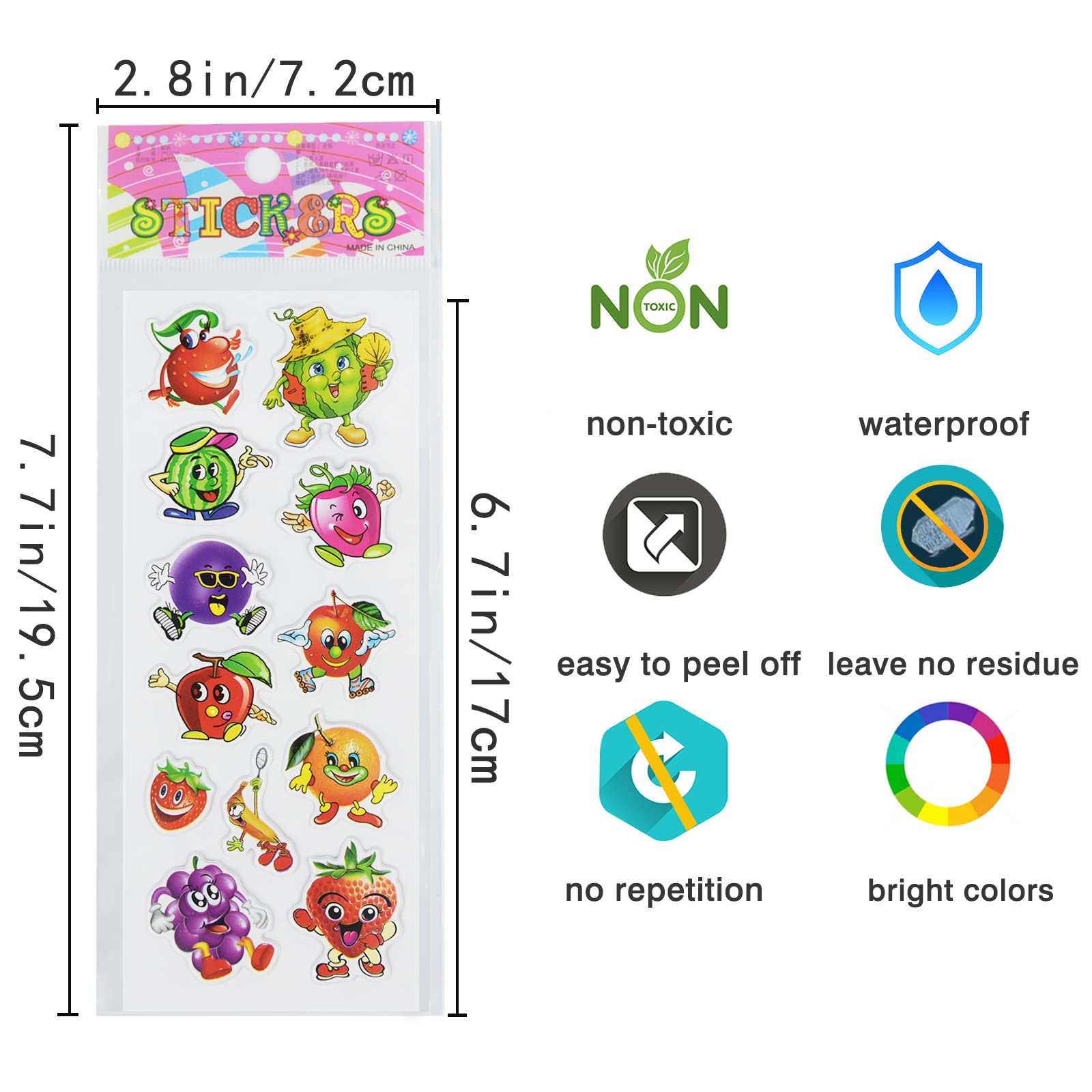 24 Sheets(350+) Fruit 3D Puffy Stickers For Toddlers Kids, Bulk Preschool Sticker Sheets For Reward, Craft, Scrapbooking