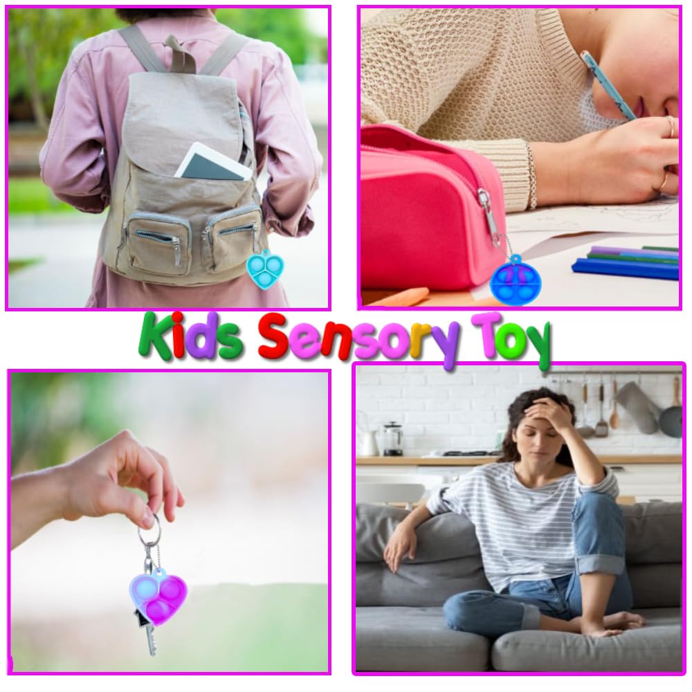• Q: How can I use these fidget toys for stress relief? A: You can use these fidget toys by pressing the bubbles to hear a satisfying pop sound, which can help relieve stress and provide sensory stimulation. They're perfect for use at home, in the classroom, or during travel.