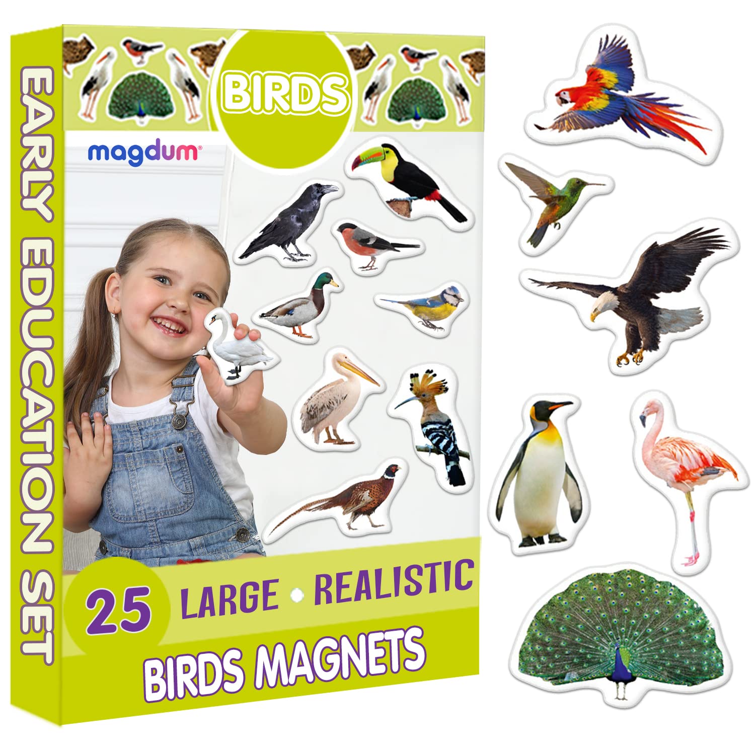 25 Fridge Magnets For Toddlers - Birds Photo Kids Magnets For Fridge - Toddler Magnets For Refrigerator - Magnetic Animals - Fridge Magnets For Kids - Animal Magnets - Toddler Fridge Magnets