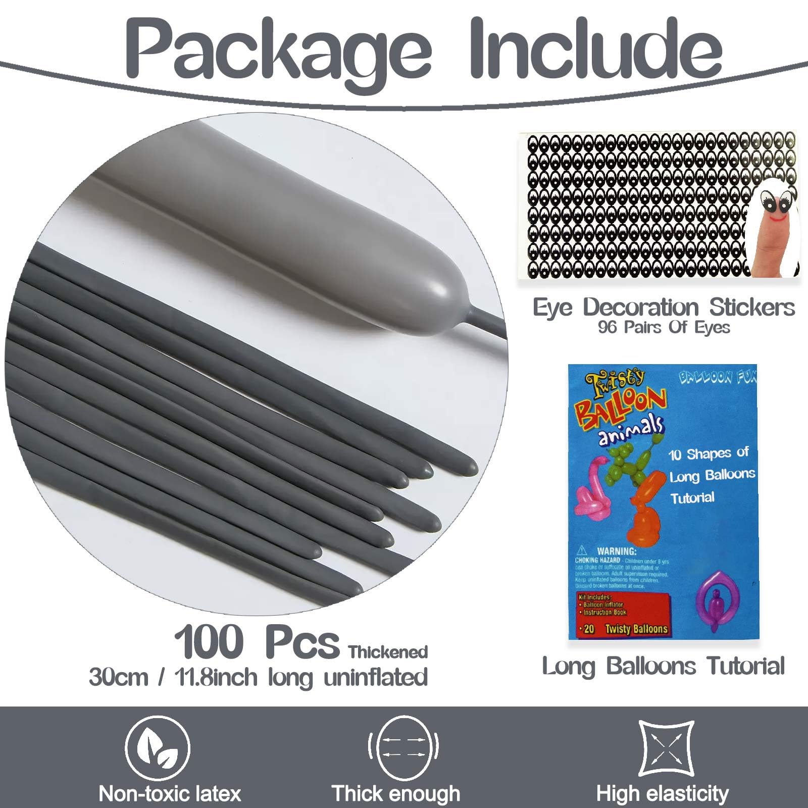 260 Balloons Grey, Thickened 100 Pack Long Balloons Twisting Skinny Magic Balloons For Balloon Arch Animals Clown Kids Birthdays
