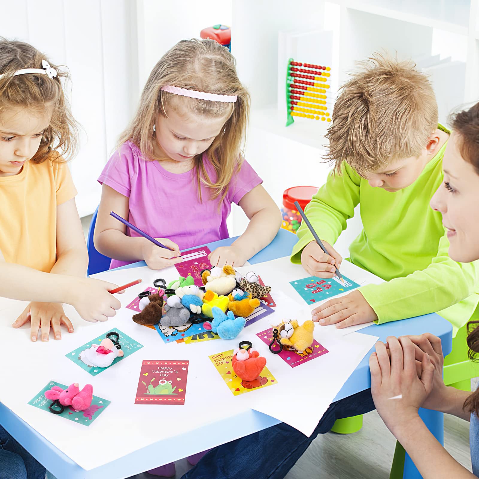 View compare28 Pack Valentines Day Gift Cards for Kids with Mini Animal Plush Toys Keychains,Stuffed Animal for Students Classroom Exchange,