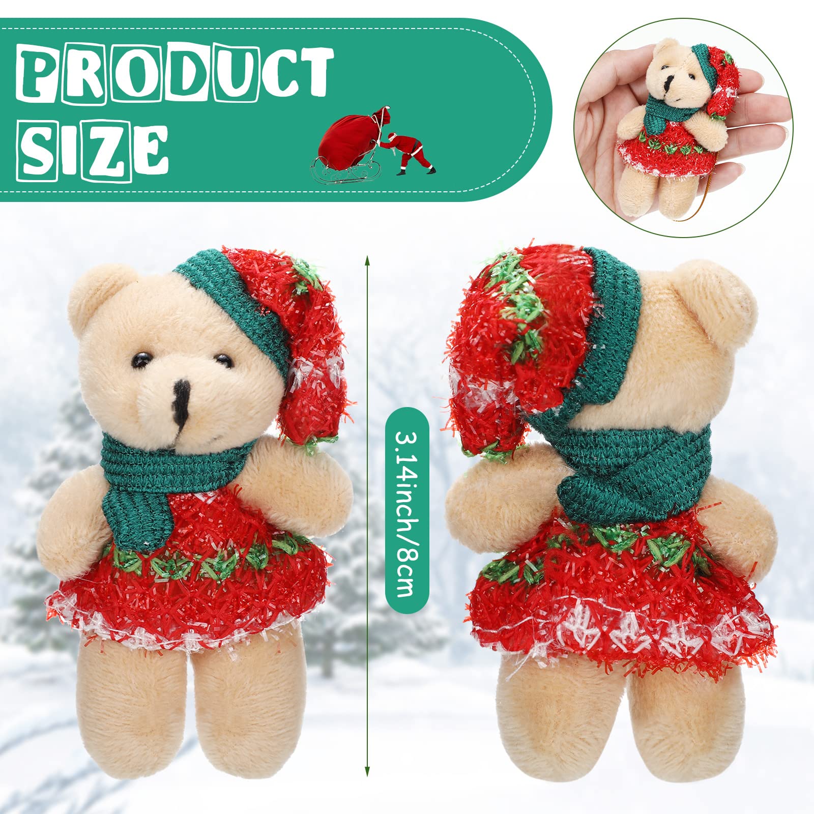 - Q: What is the size of each stuffed bear toy? A: Each stuffed bear toy measures approximately 3 inches in height, making them the perfect size for hanging on key chains, Christmas trees, or as part of holiday decorations.
