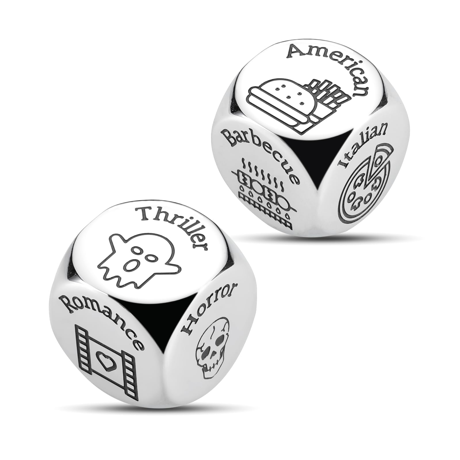 • Q: How can I use these dice during a date night? A: You can use the decision dice to randomly choose from various date night activities like Thriller, Romance, Comedy, and more, adding a fun twist to your evening.