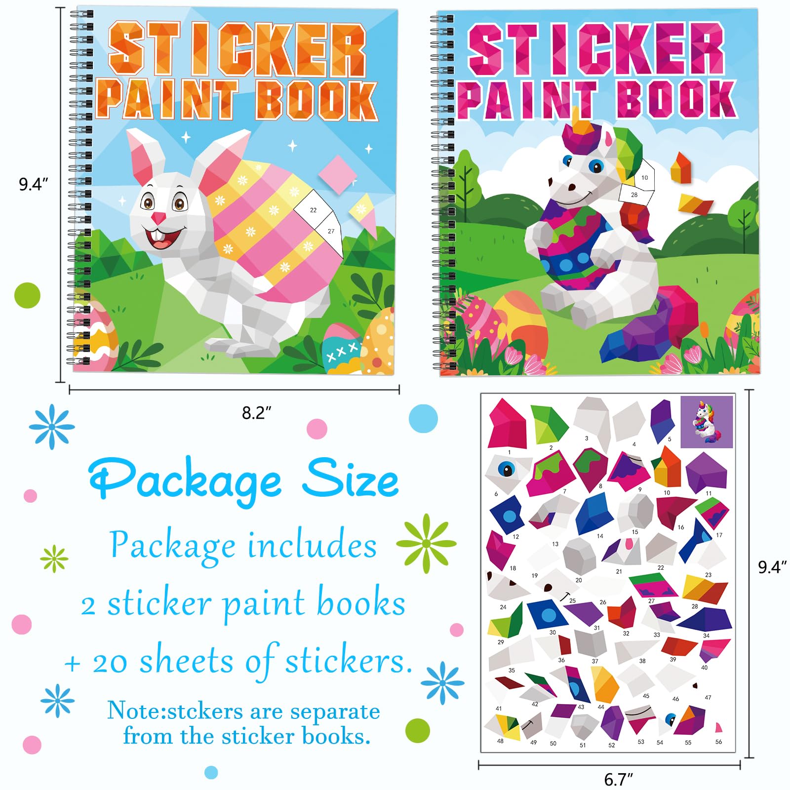 2Pcs Easter Day Crafts For Kids Ages 4-8 Sticker Paint Books Gift Party Create 20 Pictures(Sticker Sheets Are Separate)