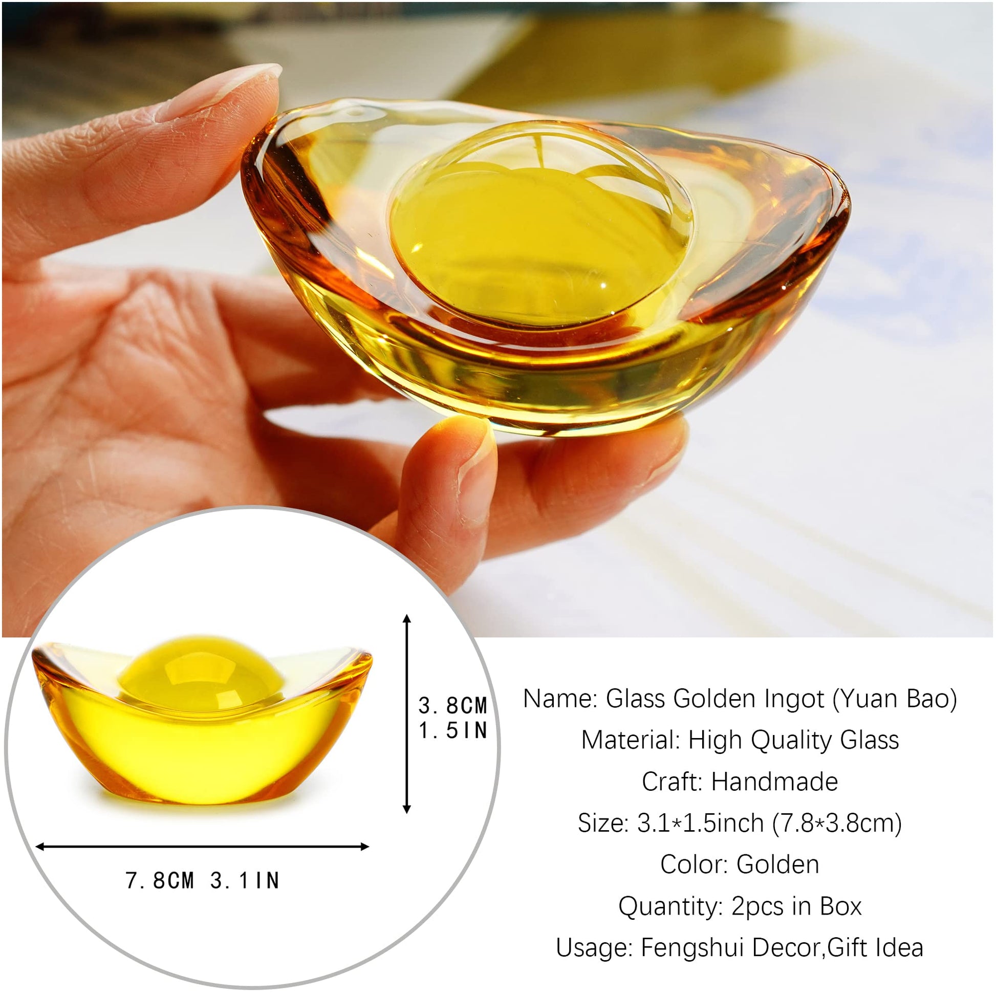 View compare2Pcs Handmade Chinese Yellow Crystal Yuan Bao Figurine Collectibles Feng Shui Golden Ingot Statues Ornament For Wealth Luck,3Inch