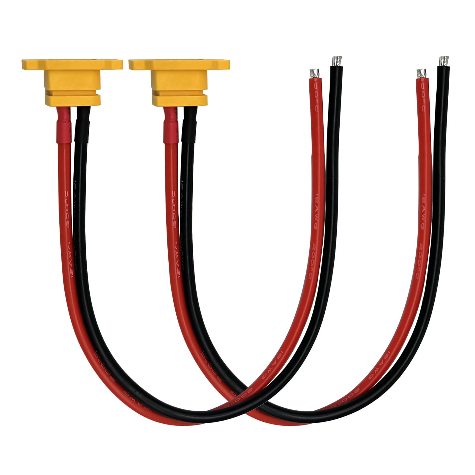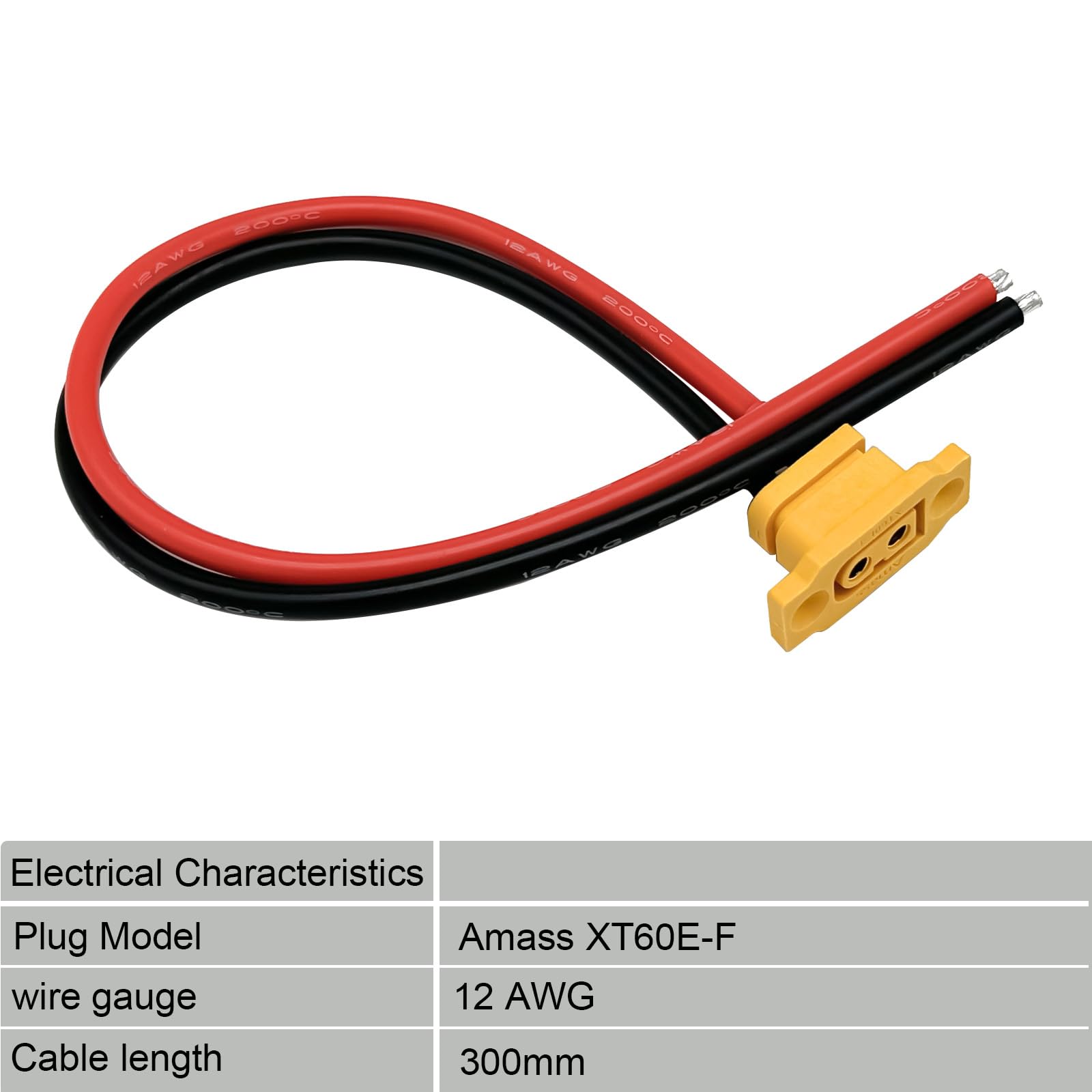 1.XT60E-F Cable Features:Item:: Panel Mount XT60 Connector Cable?Wire Length: 30cm ?Wire Gauge: 12 AWGPlastic material: PARated current: 30A Instaneus current: 60APackage lists: 2 pcs XT60E-F /Cable 2.XT60EW-M Cable Features:Item:: Panel Mount XT60 Connector Cable?Wire Length: 30cm ?Wire Gauge: 12 AWGPlastic material: PARated current: 30A Instaneus current: 60APackage lists: 2 pcs XT60EW-M /Cable