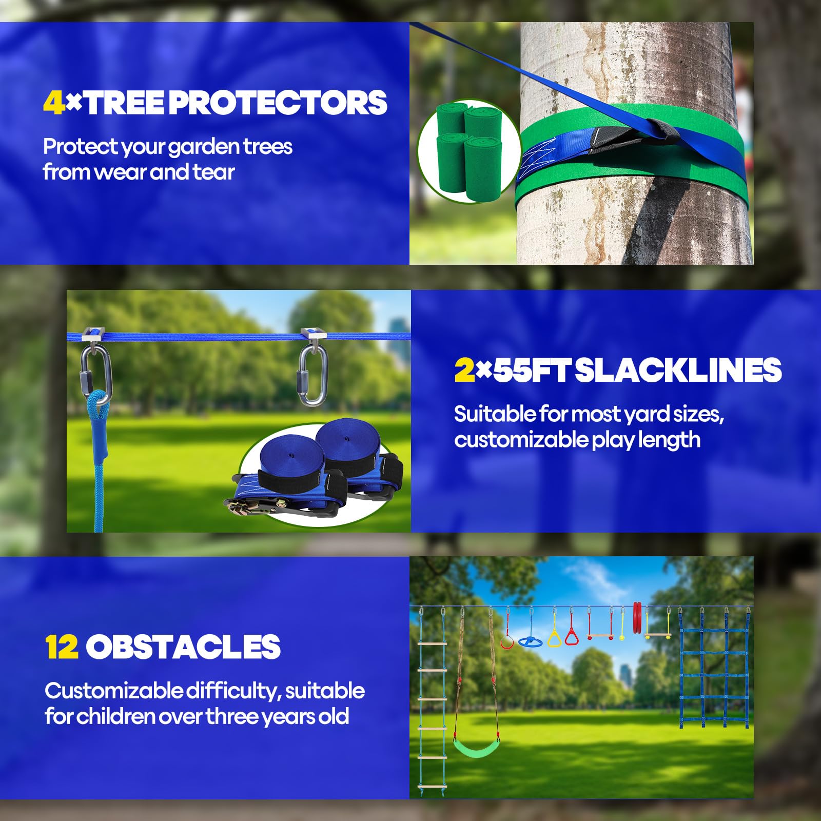 2X55Ft Ninja Warrior Obstacle Course For Kids With 13 Obstacle Course Accessories-Swings, Monkey Bars, Arm Trainers And More, Su