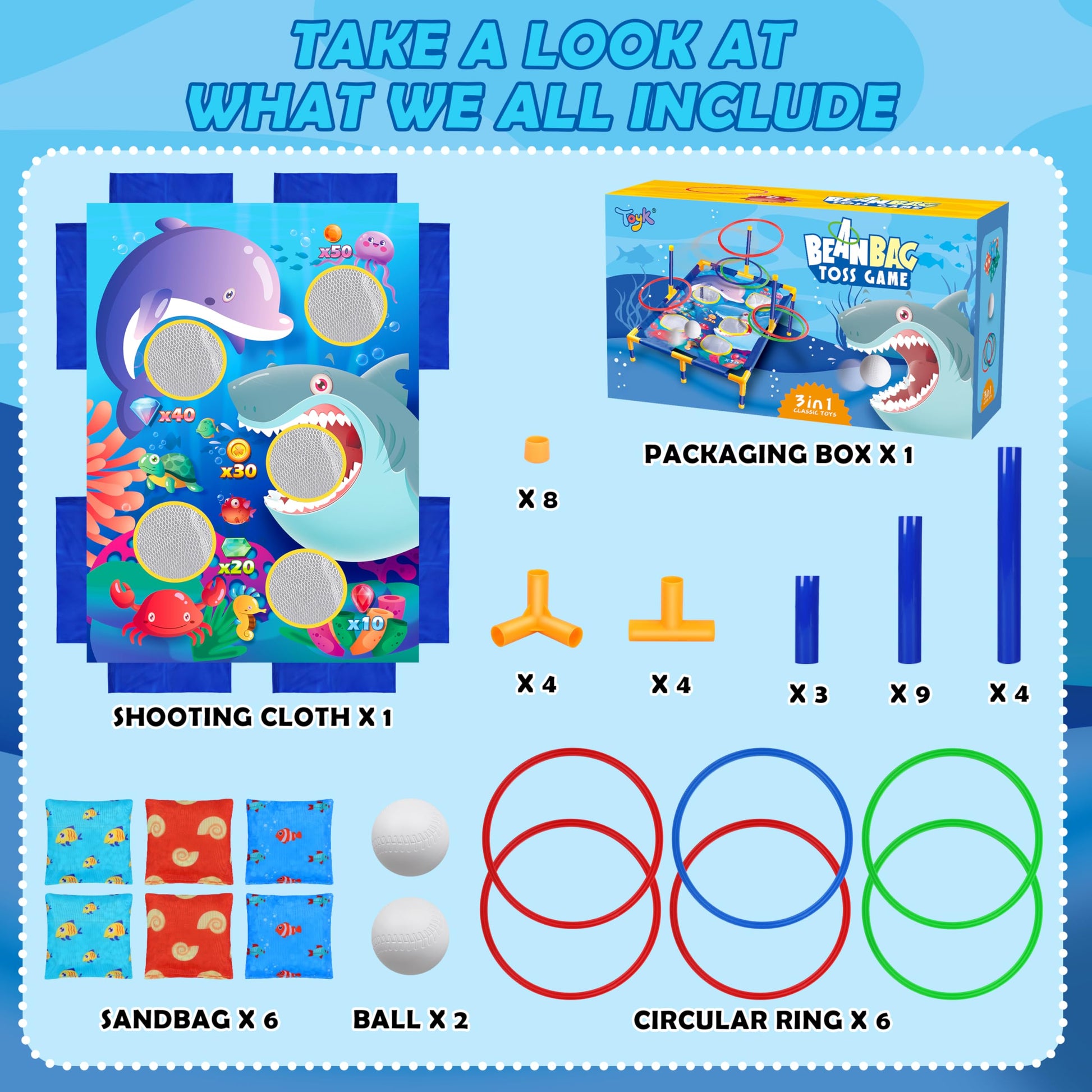 • Q: What activities can my kids do with this bean bag toss game? A: This game includes three exciting modes: ring toss, bean bag tossing, and ball throwing, allowing kids to enjoy diverse activities that promote physical activity and coordination.