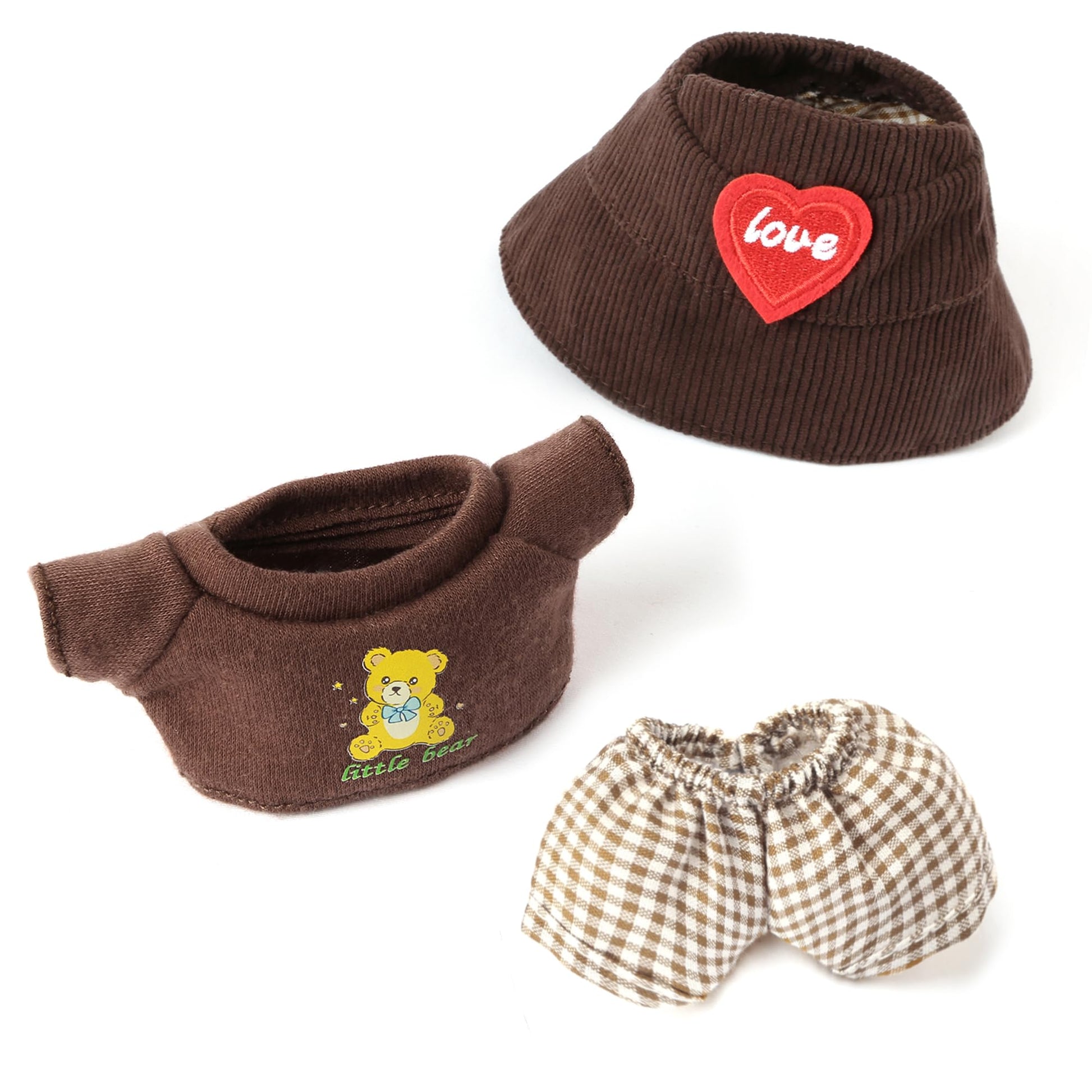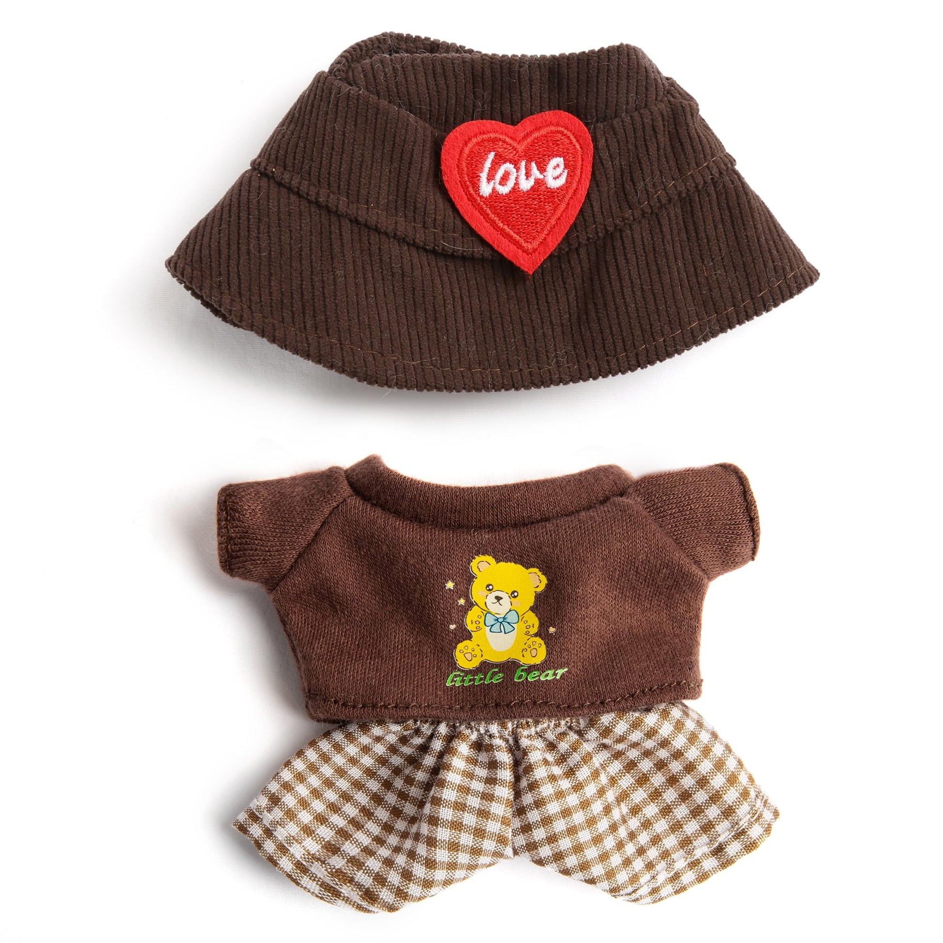 3-Piece Doll Clothes for 17cm Doll - Stylish Fisherman Hat Set Kawaii Doll Outfits with Accessories for Collectors or Display - Coffee Bear (No Doll)