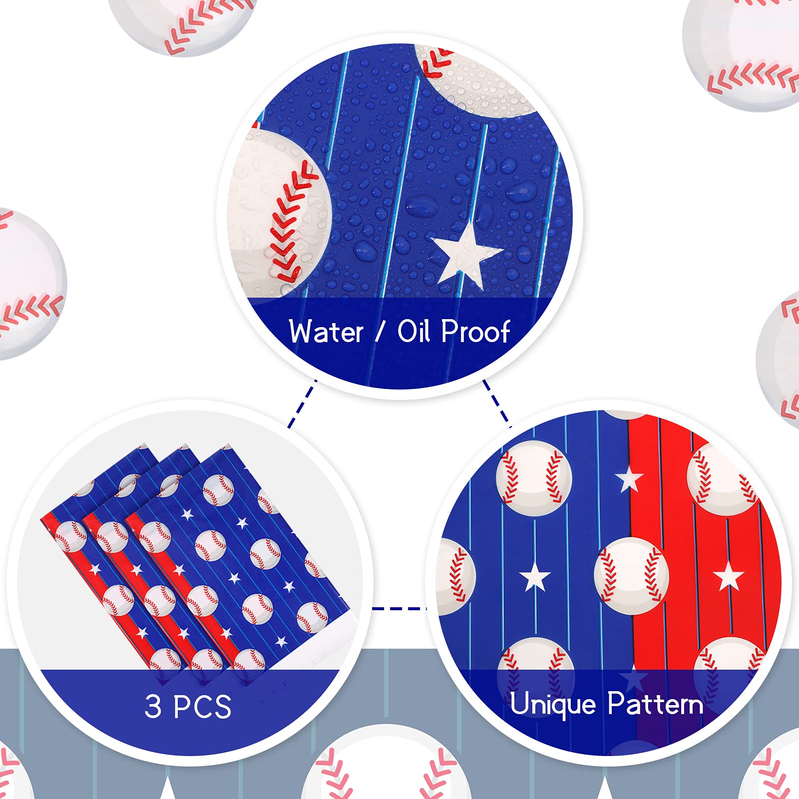 3 Pieces Baseball Tablecloth Baseball Party Decorations Disposable Baseball Table Covers Plastic Baseball Birthday Party Supplie