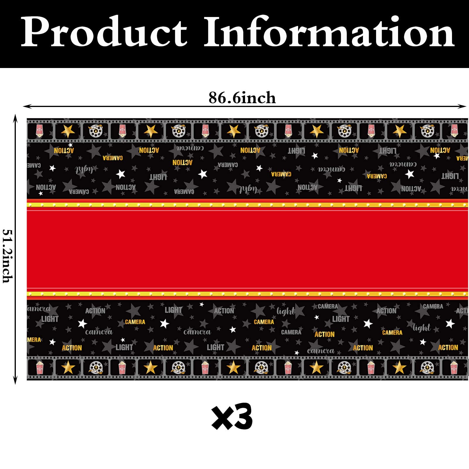 3 Pieces Movie Night Tablecloth Plastic Movie Theme Table Covers Movie Theater Table Cloth for Movie Night Party Supplies Movie