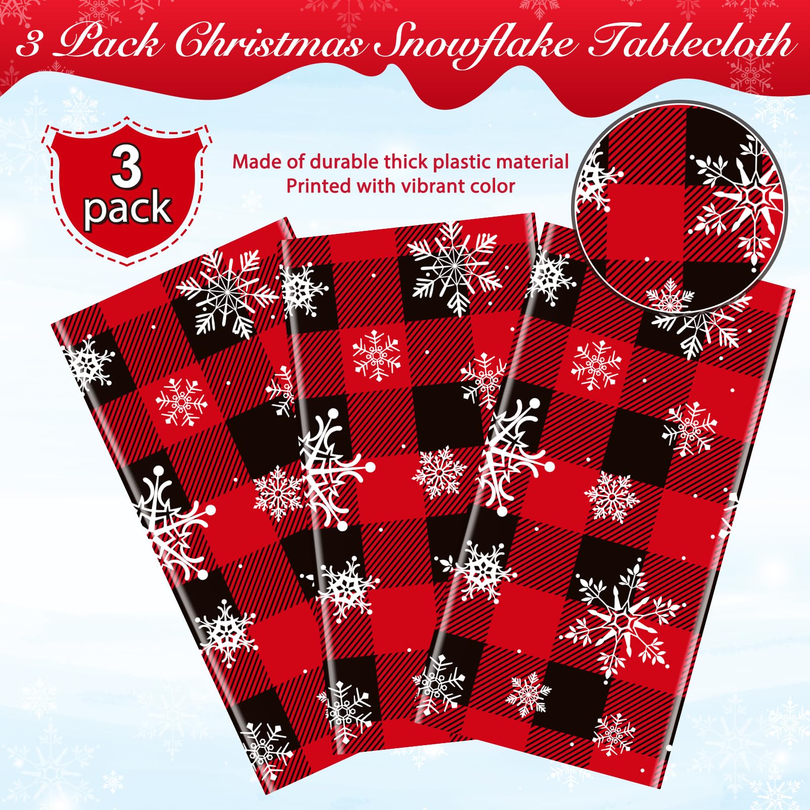 3 Pieces Red and Black Buffalo Plaid Merry Christmas Party Tablecloth Decorations,Plastic White Snowflake Buffalo Plaid Sign Tab