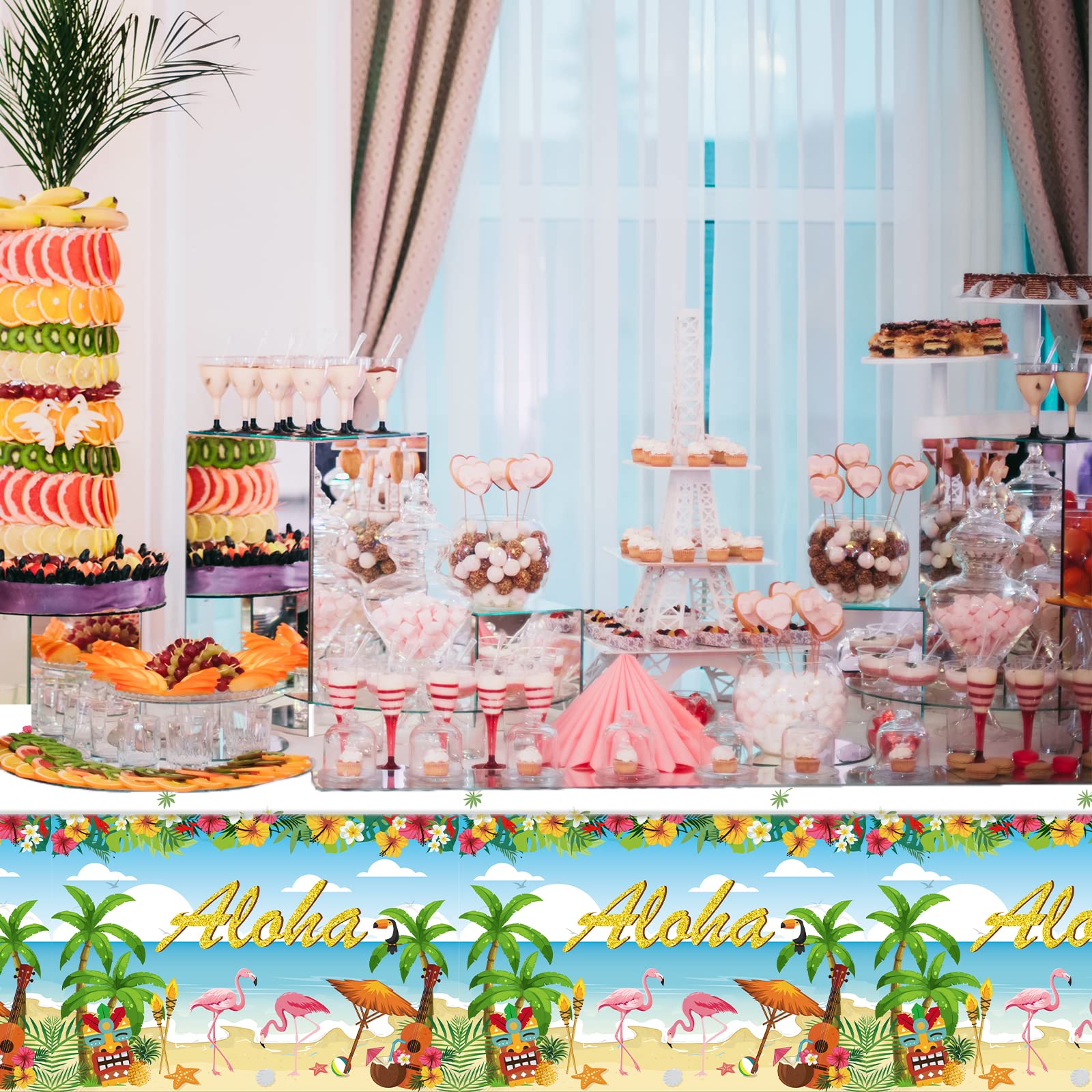 3 Pieces Tropical Luau Party Tablecovers Hawaiian Beach Theme Tableclothes for Summer Beach Party Aloha Decorations Supplies 54X