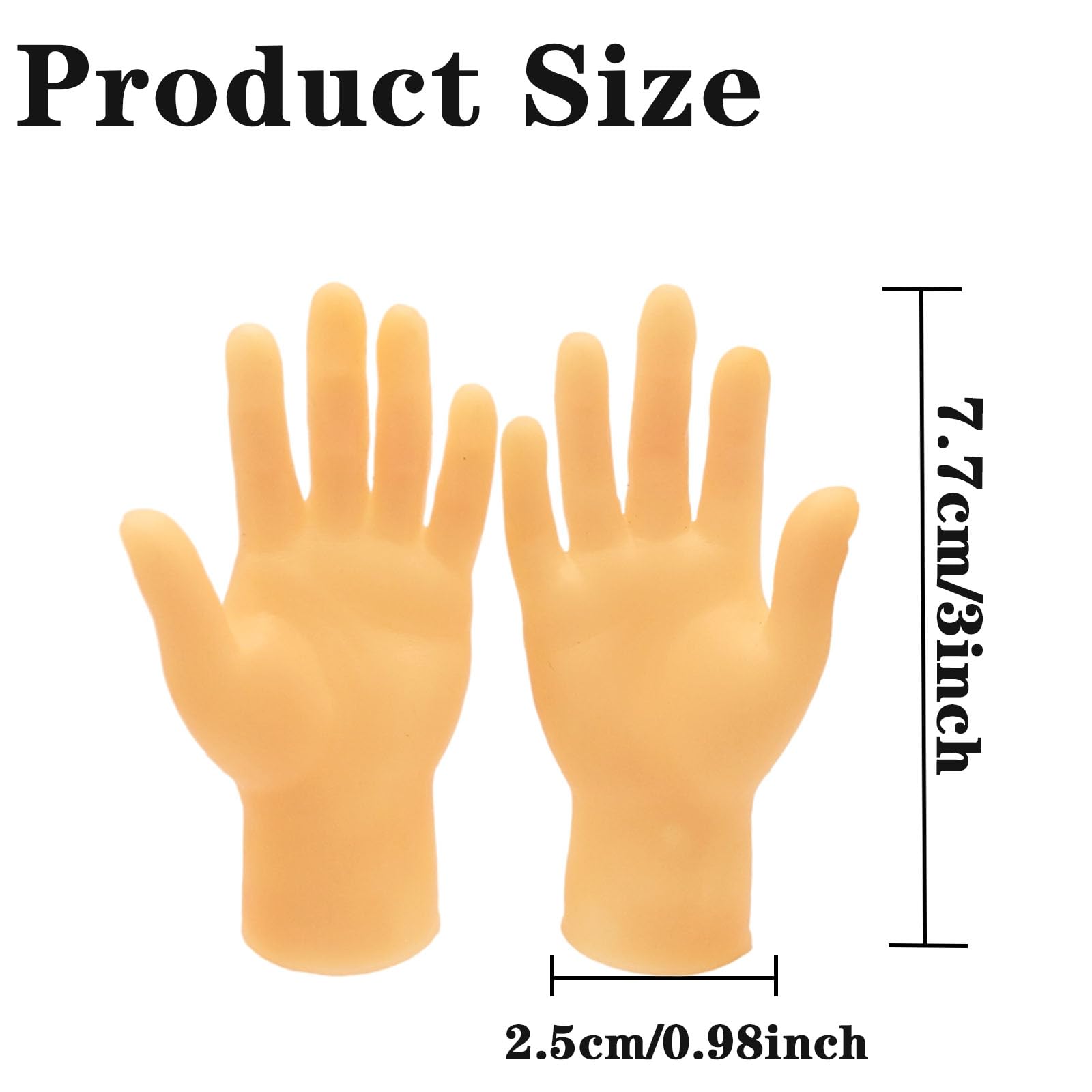 - Q: What are the dimensions of the tiny finger hands? A: Each tiny finger hand measures approximately 2.5 inches in length and 0.98 inches in width (7.7 cm x 3 cm), making them perfect for fitting comfortably on adult and children's fingers.
