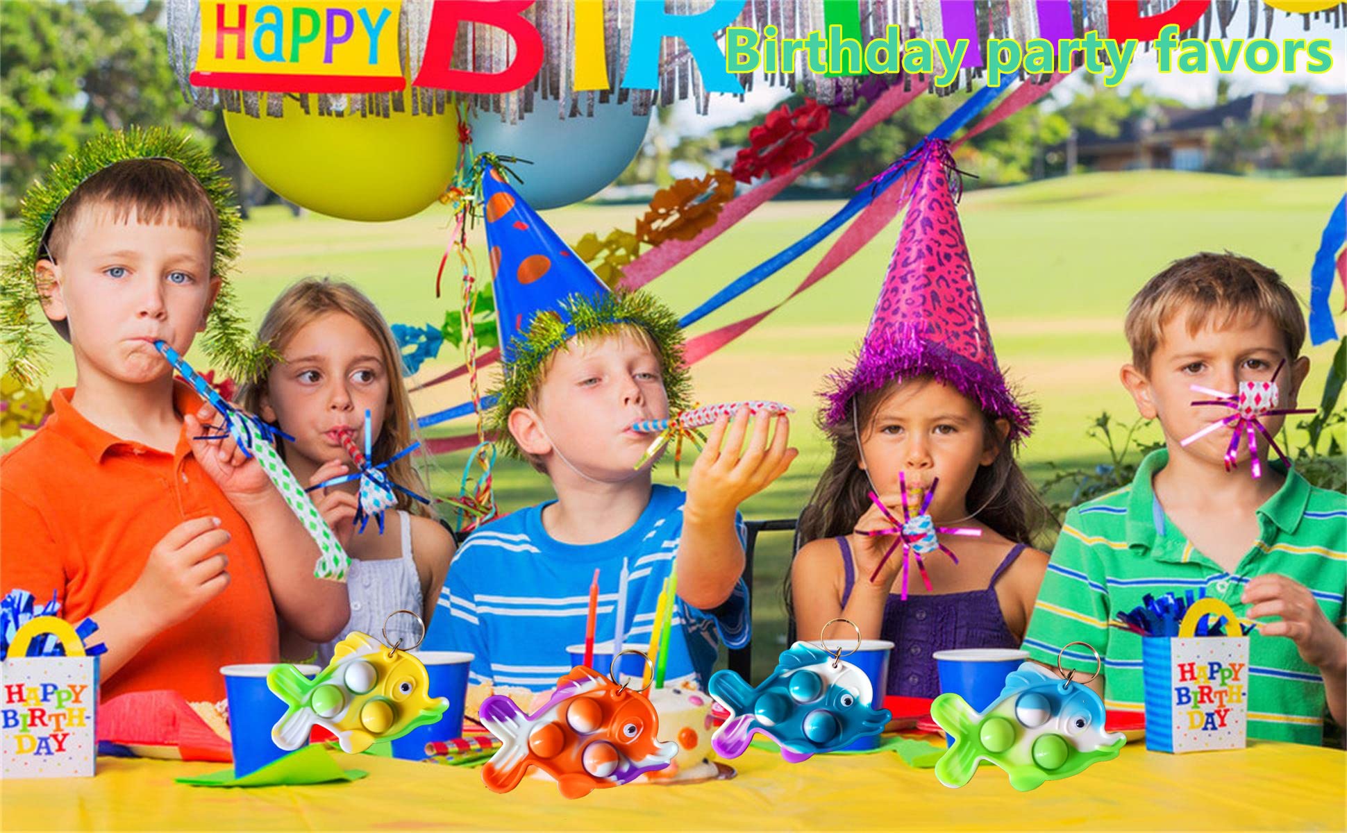 1,Cute,Tiny,soft,Popular,attention,Cool shape,many colors,Unique,fun.30 packs fish mini pop included,random color to send. | 2,Made of silicone,Safe.It will become mini portable toys for a long time. | 3,You can take them as keychain decoration for House Hoor,Car,Bike,backpack,bag,travel case. | 4,Nice gifts,Encouraging Students Graduation Gifts from Teacher.Amazing Birthday Party favors, Thank you gifts for kids,Boys,Girls.Even useful for Camp,Most Party activity,Summer Holiday,Match Activity,Sport Activity,Drawing Activity. | 5,If You have any problem,Please contact to me as soon as possible.Thank you very much.
