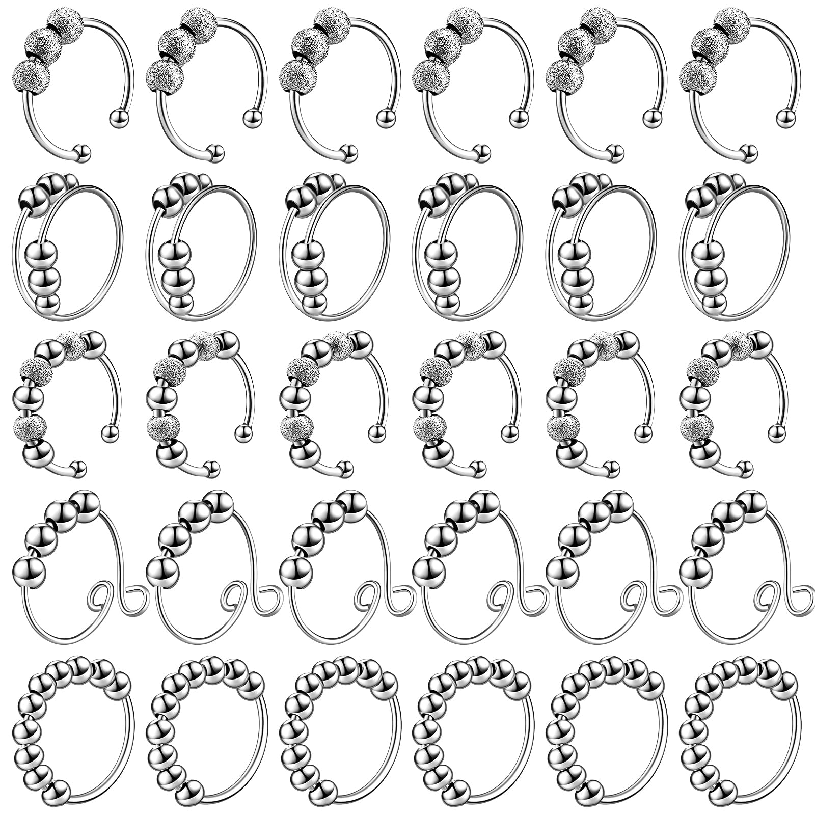- Q: What are the benefits of using the 30 Pcs Anxiety Fidget Rings? A: The 30 Pcs Anxiety Fidget Rings are designed to help relieve stress and anxiety through their adjustable spinner feature. They provide a soothing tactile experience that can aid in calming the mind and improving focus, making them ideal for both men and women.
