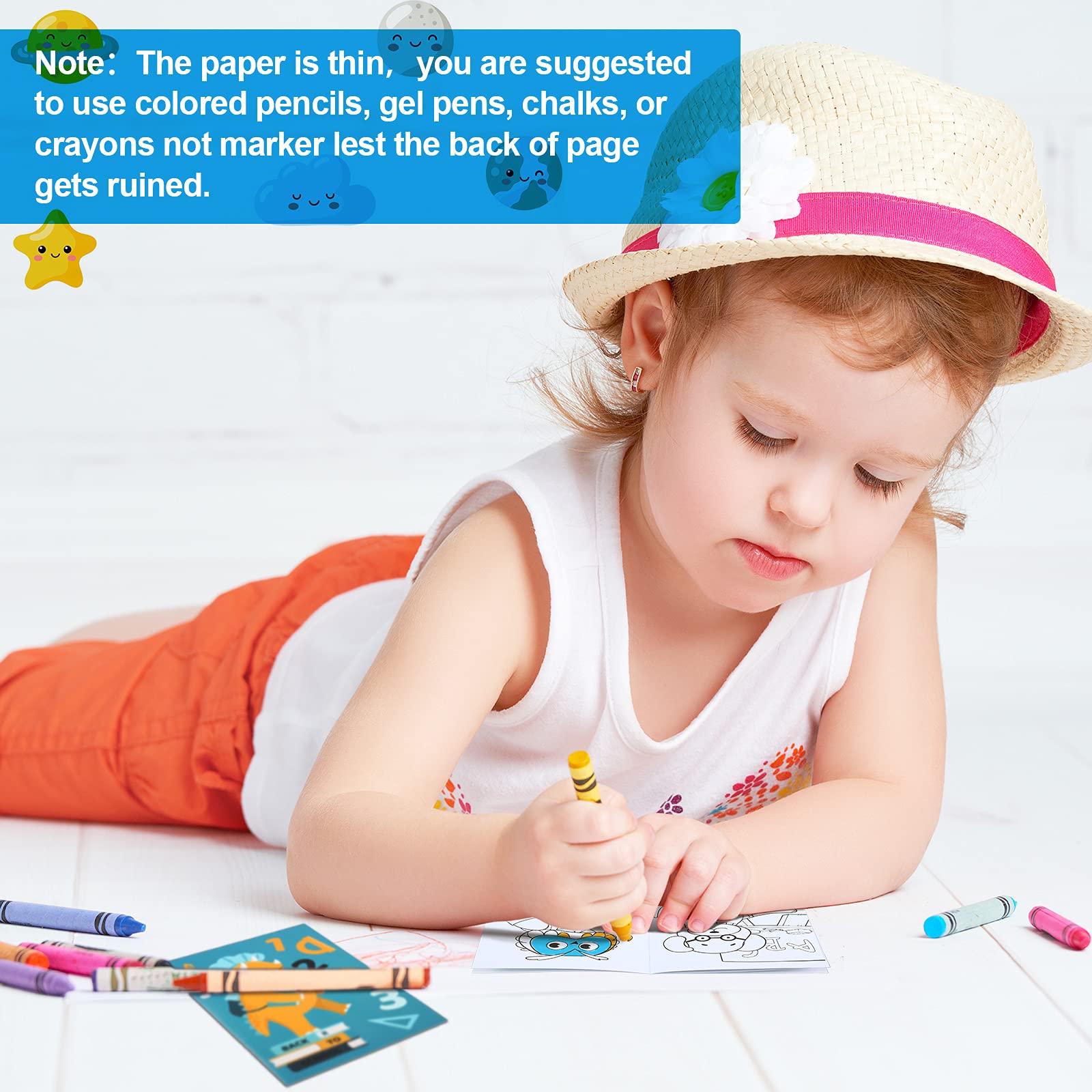 - Q: What is the size of each coloring book? A: Each coloring book measures 5.5 x 3.8 inches, making it easy for kids to hold and carry around. This size is perfect for little hands, allowing for comfortable coloring experiences.