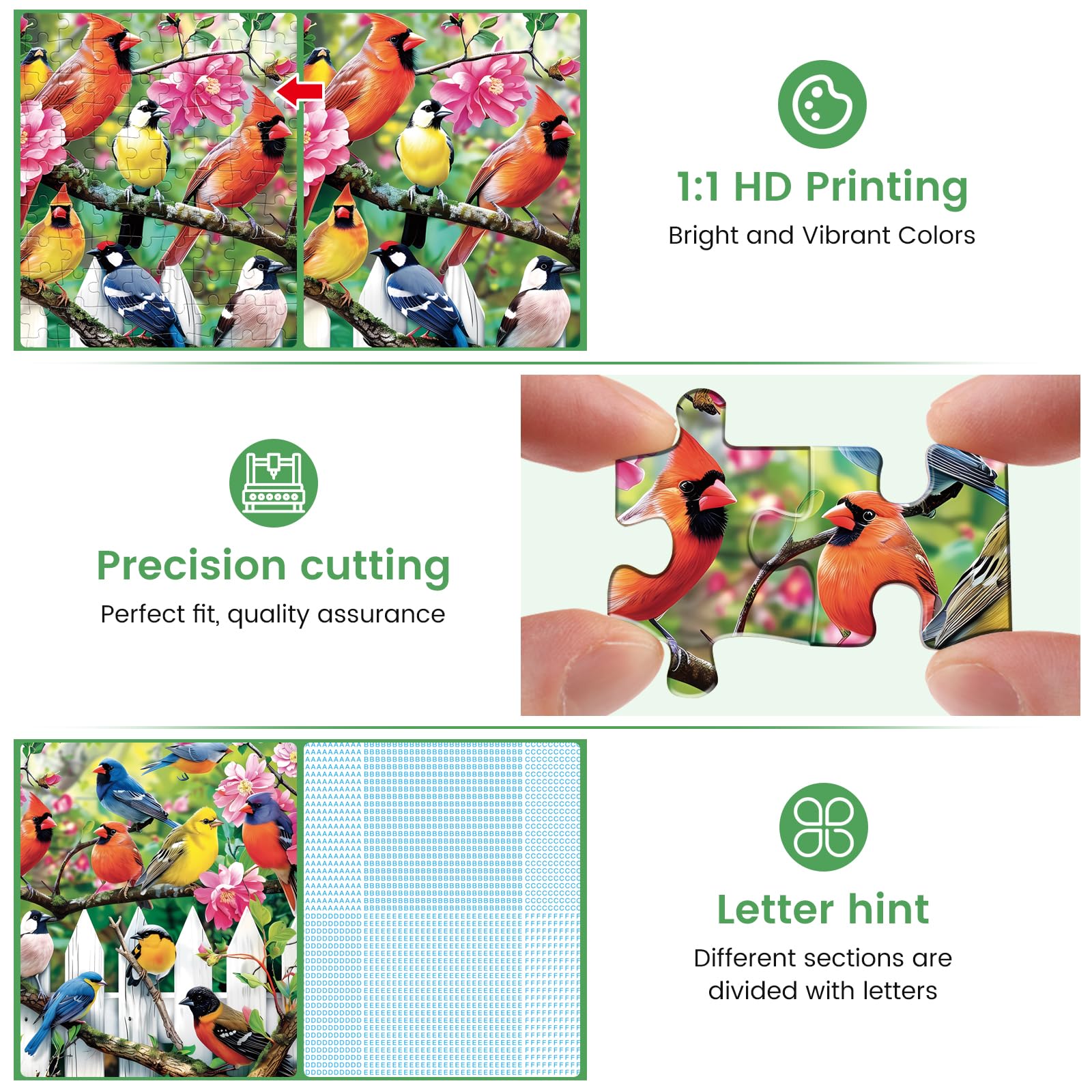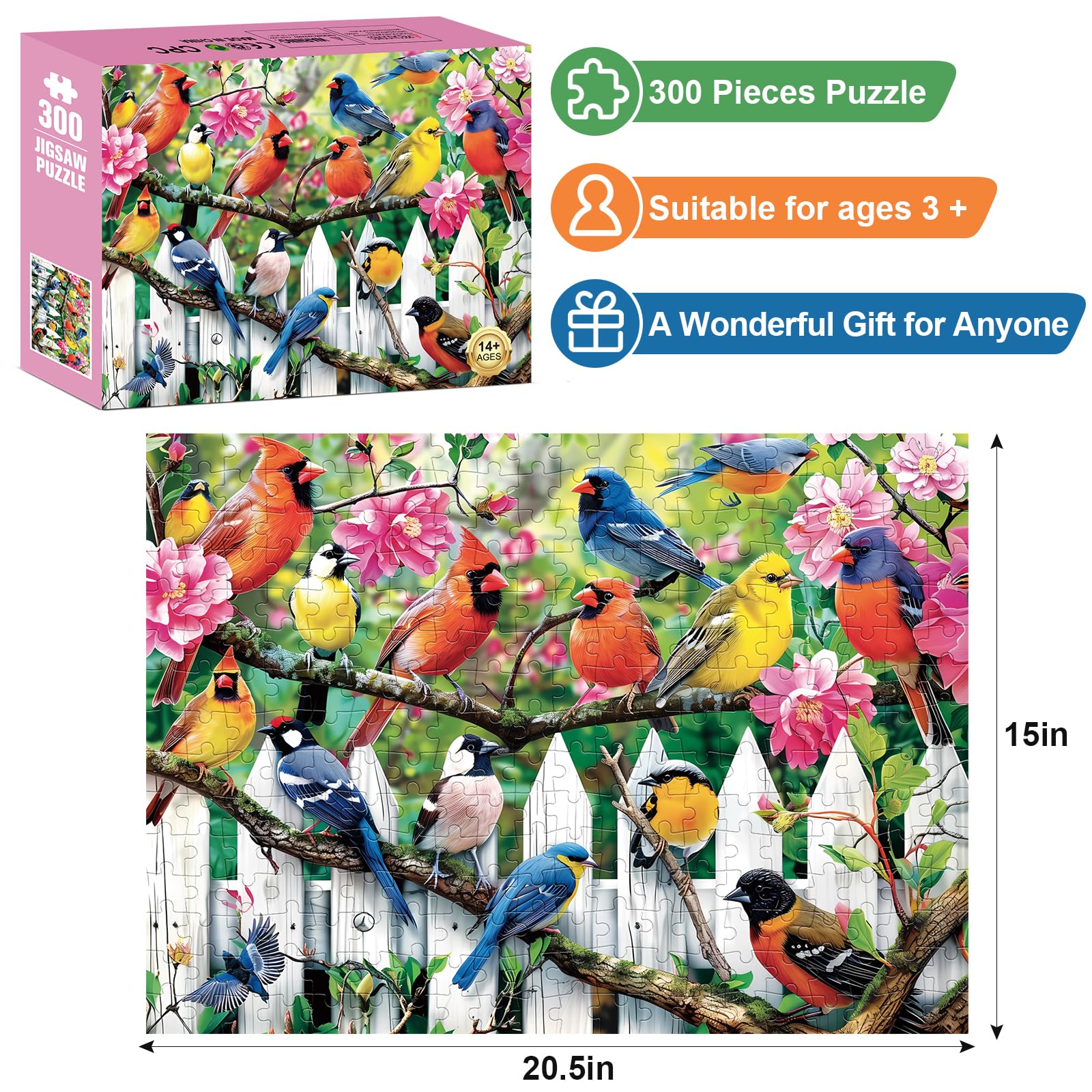 - Q: Is this puzzle a good gift for bird lovers? A: Absolutely! This 300 Pieces Jigsaw Puzzle showcases charming cardinal birds in their natural habitat, making it a perfect gift idea for bird enthusiasts and nature lovers.