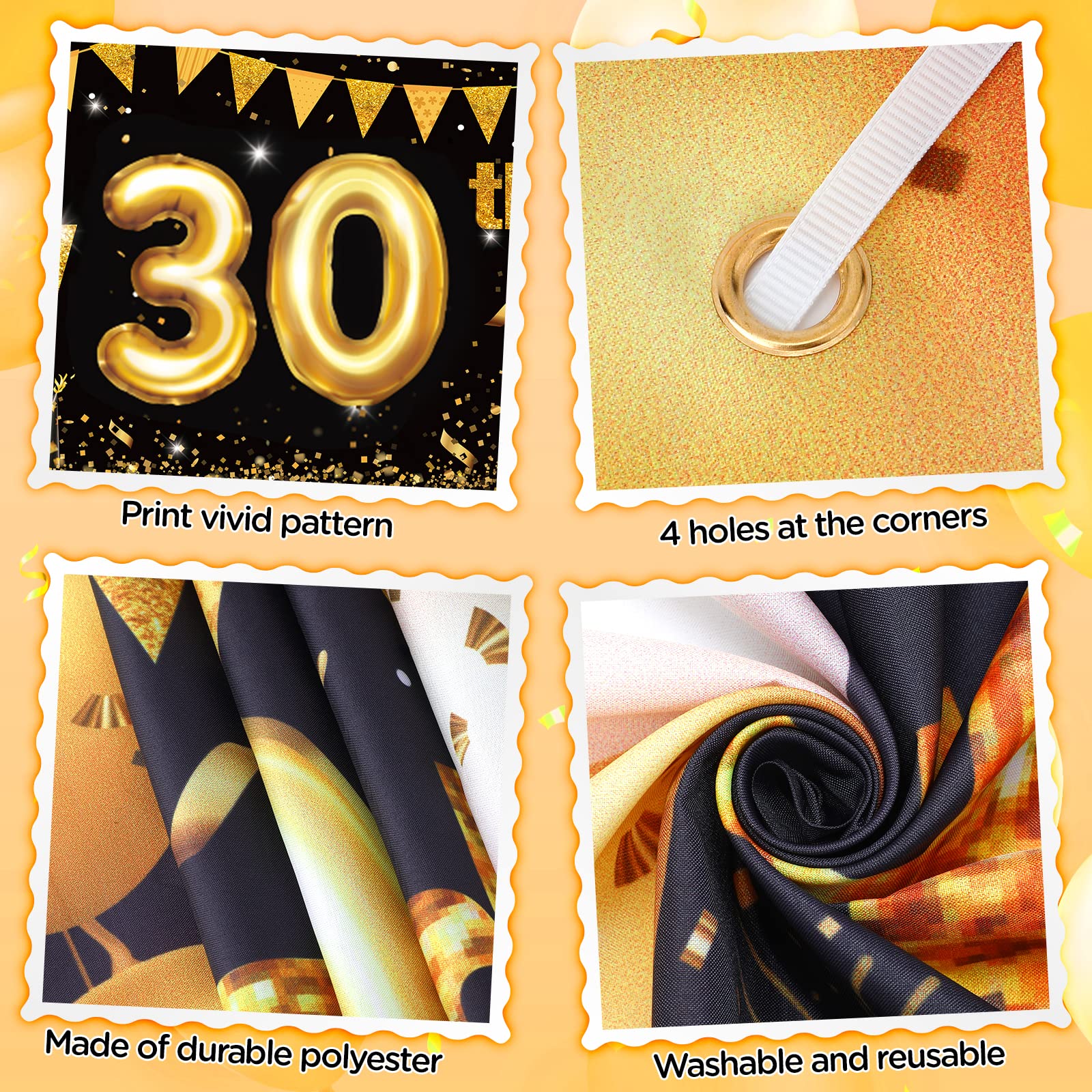- Q: How big is the banner and what is its design? A: The banner measures 250*45cm (98.4*17.7 inches) and features a stylish black and gold design with the words 'HAPPY 30th BIRTHDAY' printed prominently, making it an eye-catching addition to your party decor.