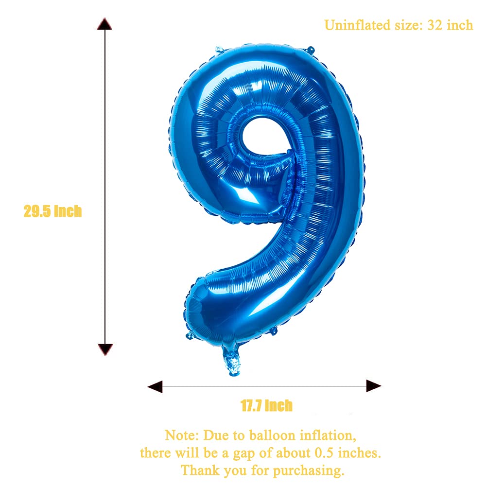 32 Inch Blue Number 9 Balloons Foil Ballon Digital Birthday Party Decoration Supplies (Blue Number 9 Balloon)