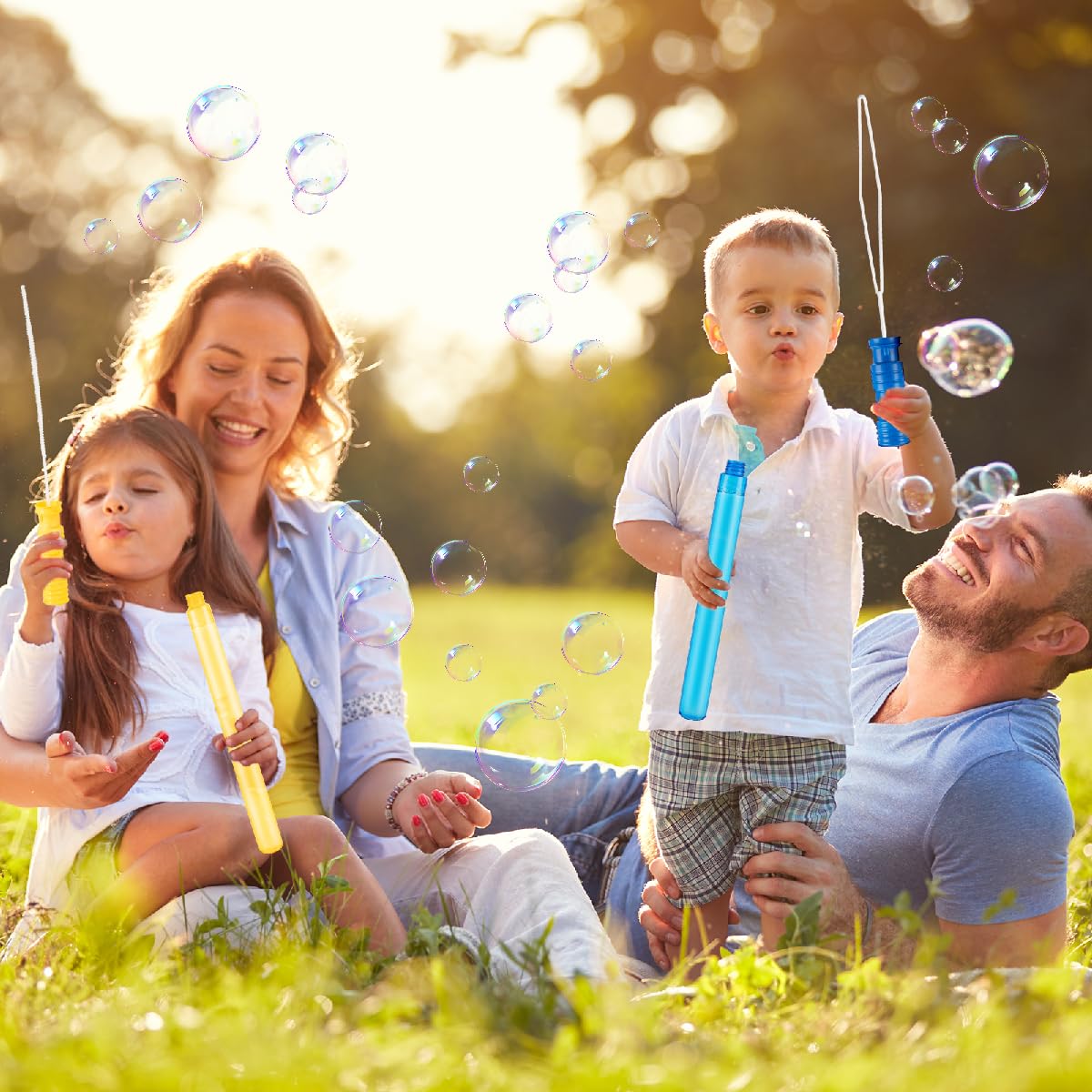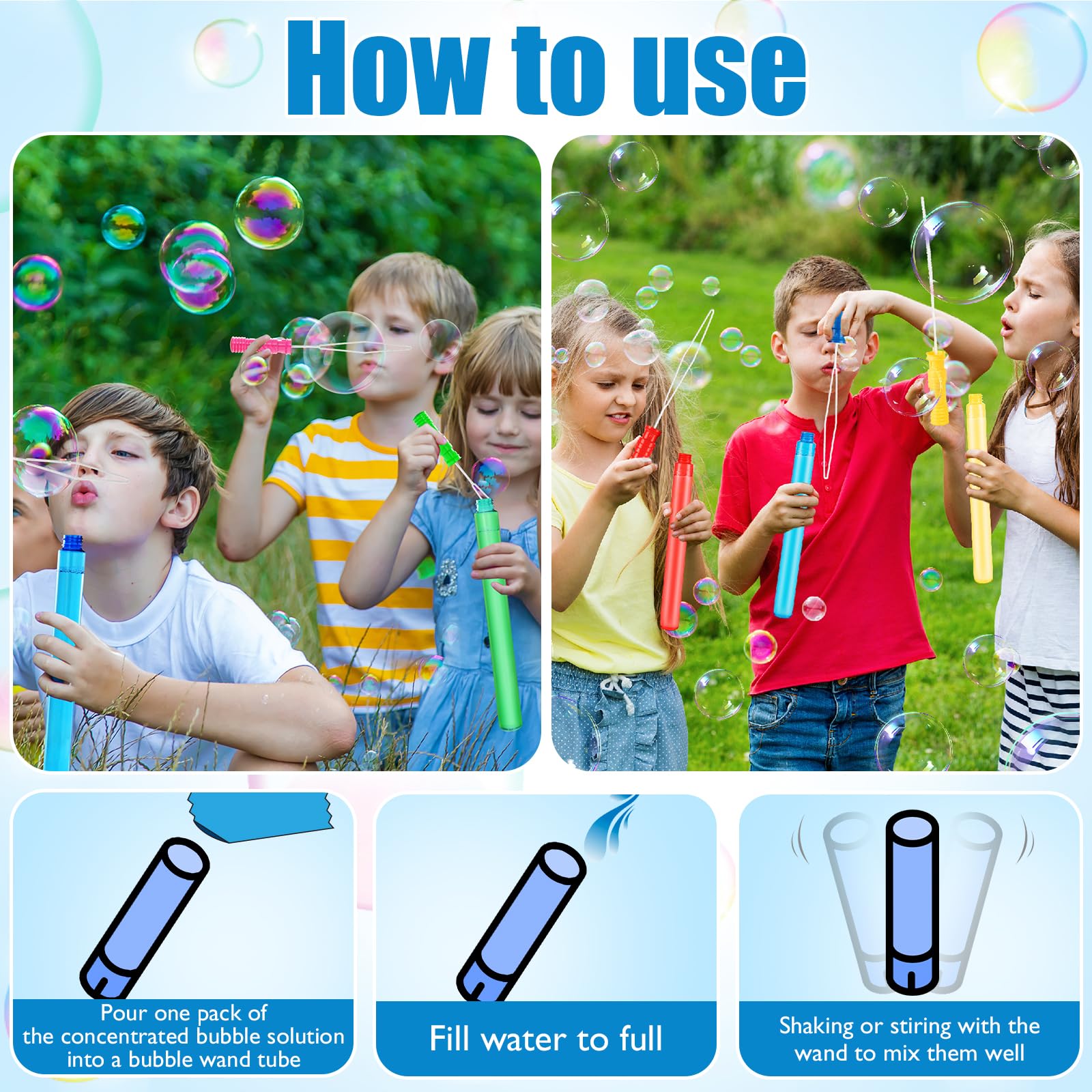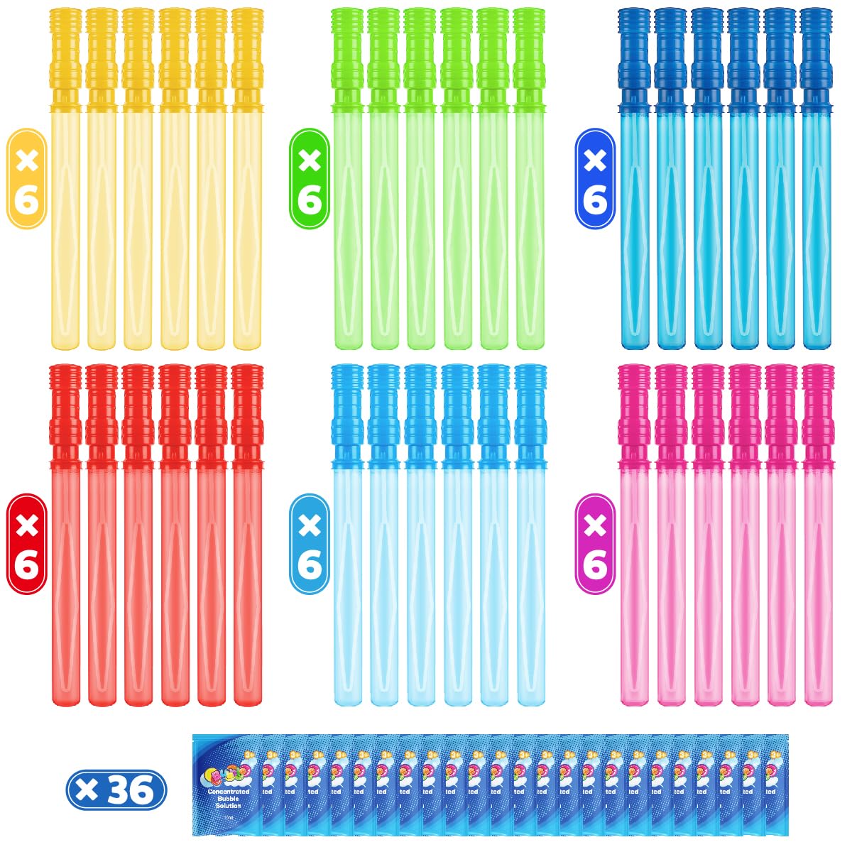 36 Pack 15'' Bubble Wands in 6 Colors, Big Bubble Wands with 36 Bubble Refill Solutions, Bubbles Party Favors for Easter, Birthday, Wedding, Carnival Prizes, Summer Outdoor Indoor Toys, Easter Bubbles