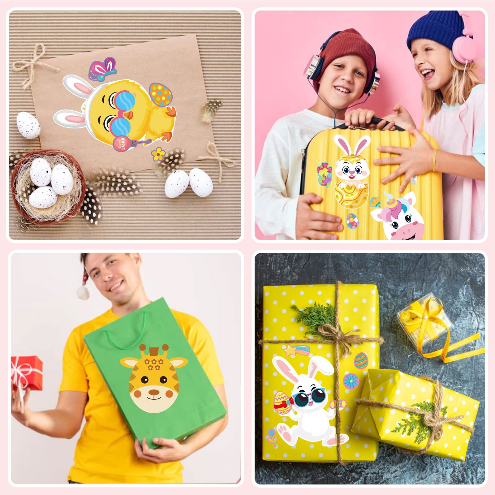 - Q: How many different designs do the stickers include? A: The set includes 12 different cute Easter designs, featuring popular characters like pigs, cows, ducks, sheep, bunnies, rabbits, and chickens.