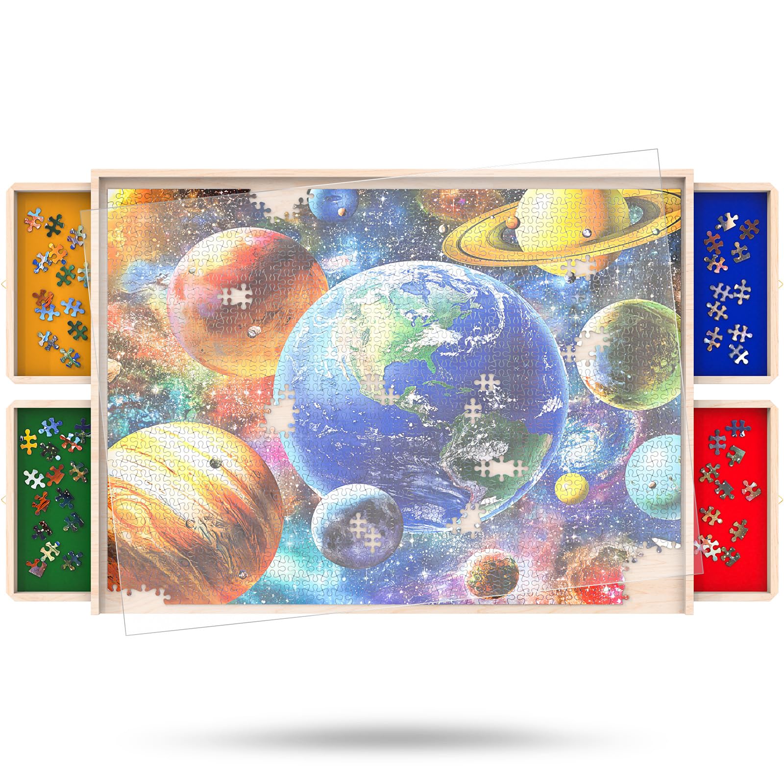 - Q: Can I store my puzzle pieces in the drawers? A: Yes, the puzzle board comes with four sliding drawers designed for organizing your puzzle pieces by color, theme, or type, ensuring easy access and preventing any pieces from going missing.