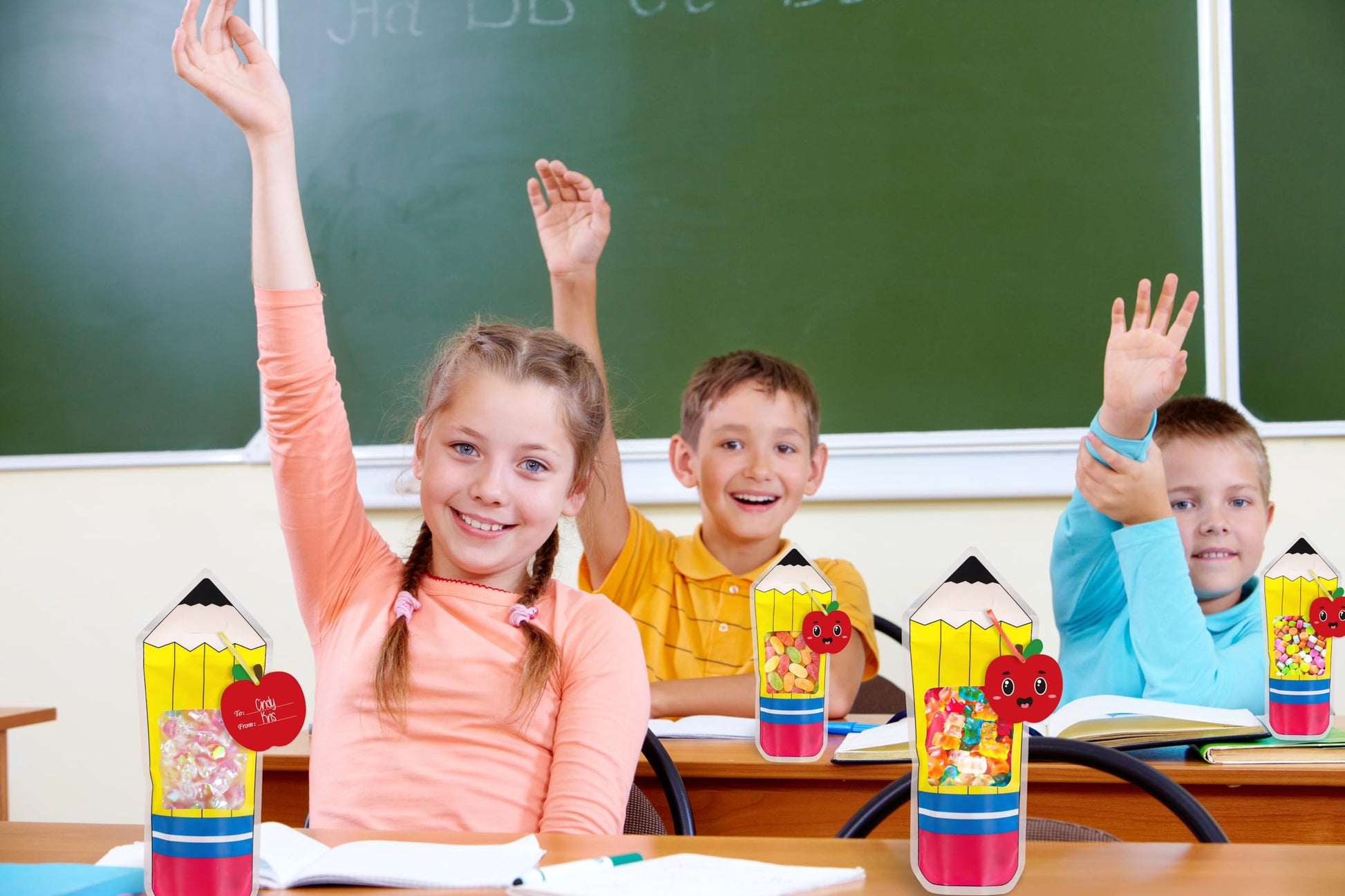 36PCS Back to School Goodie Bags Gifts Bulk: Students Teachers Party Favors, Plastic Candy Snack Pencil Treat Bag with Card, Tea