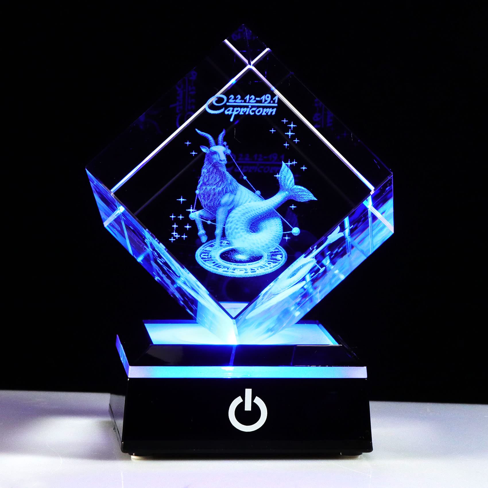 3D Crystals Capricorn Zodiac Astrology Gifts For Women Men,Capricorn Glass Figurine Decor Constellation Stuff December January B
