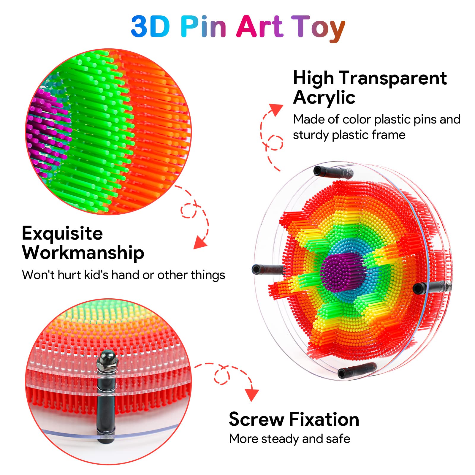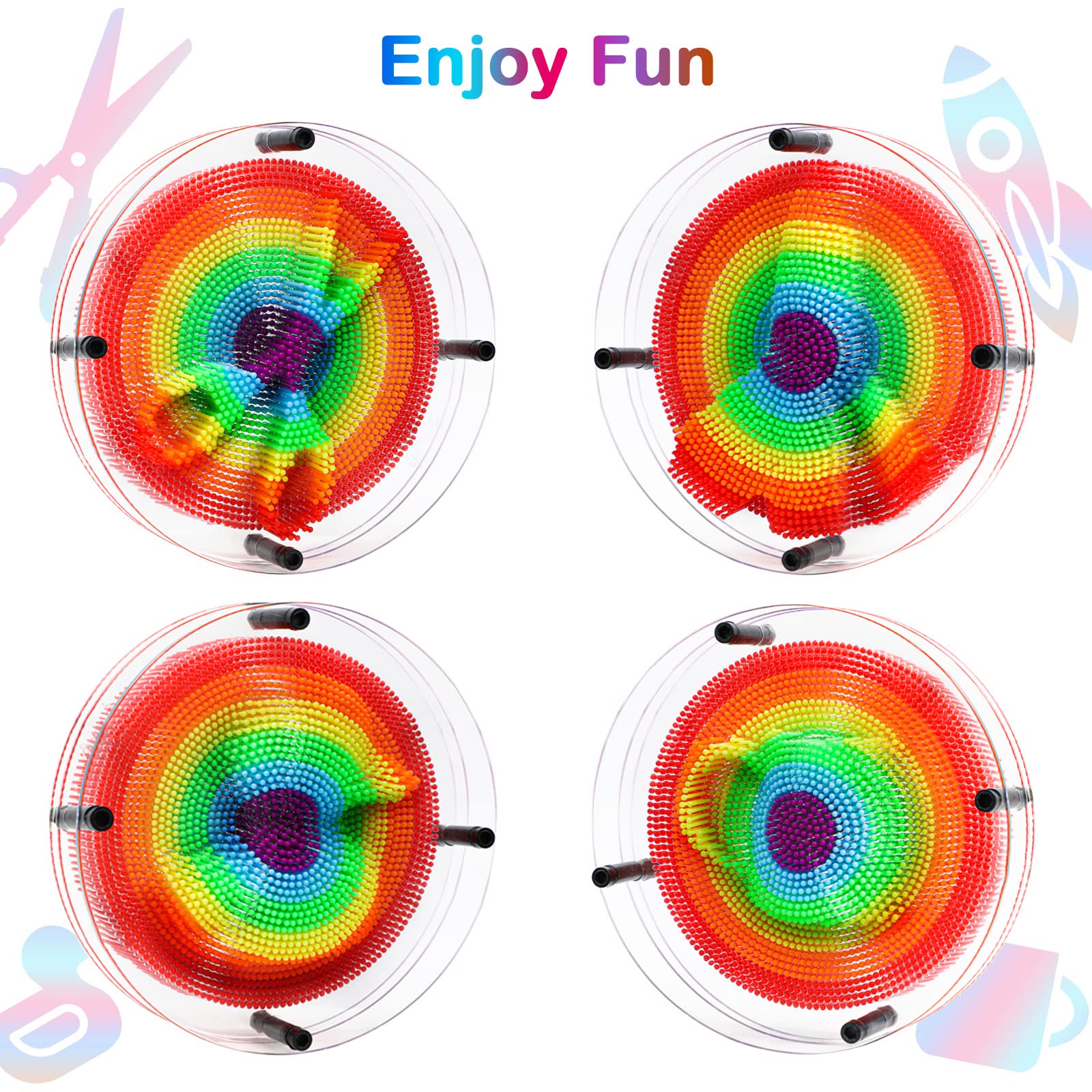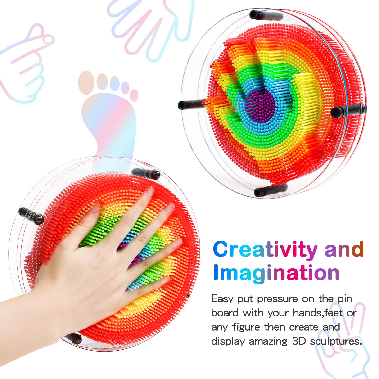 3D Pin Art Toy, Pin Art Sensory Toy For Kids, Large Pin Art Board Size 6.5 X 6.5 Inches, Pin Impression Toy For 3 4 5 6 7 8 9 10+ Year Old Boys Girls, Round Pin Art Fidget Toys For Children (Rainbow)