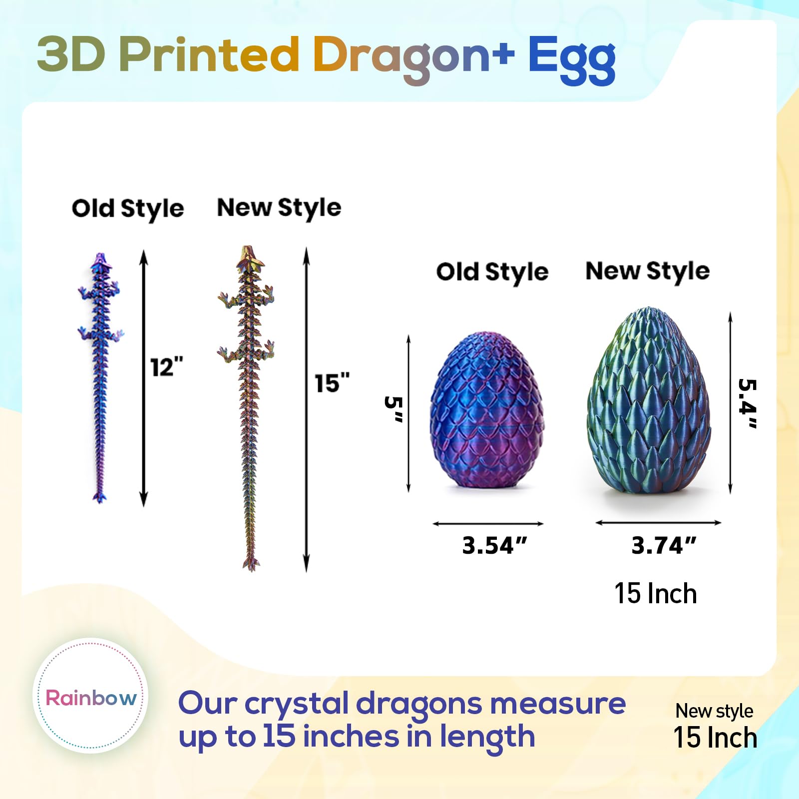 3D Printed Dragon,Dragon Eggs With Dragon Inside,Dragon Egg Toy,15'' Full Articulated Crystal 3D Dragon For Children'S Day Gift