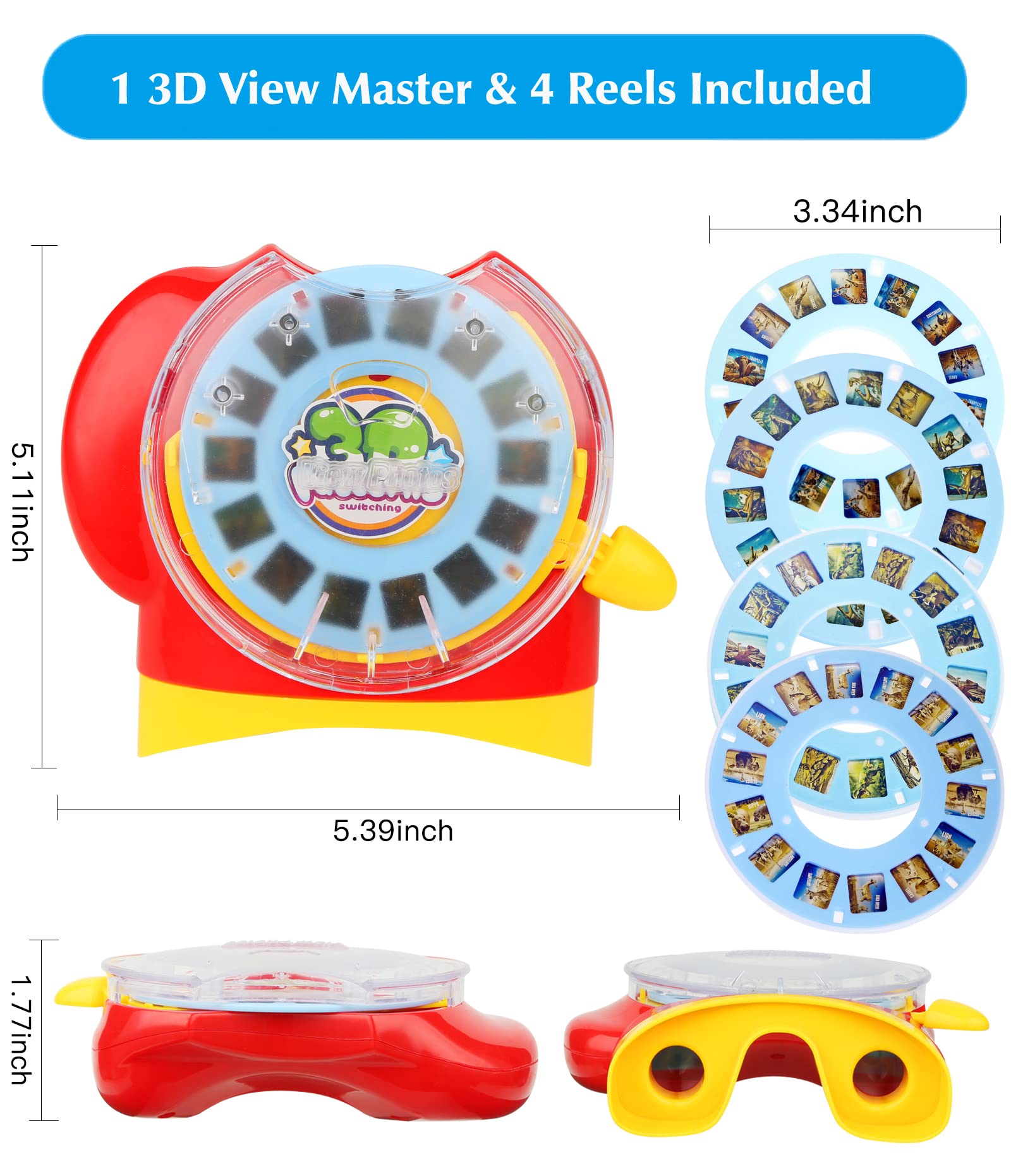 - Q: How does the 3D Viewfinder work? A: To use the 3D Viewfinder, simply insert one of the 4 themed reels that come with the toy. Move the joystick to switch between the 14 frames on each reel, allowing your child to experience lifelike 3D images of animals and dinosaurs.