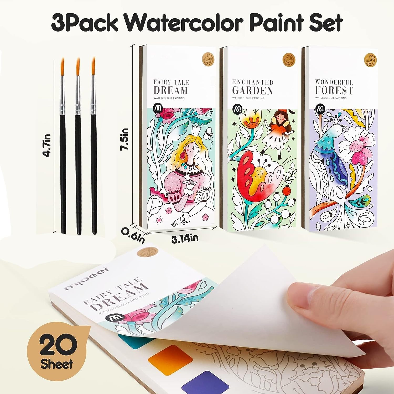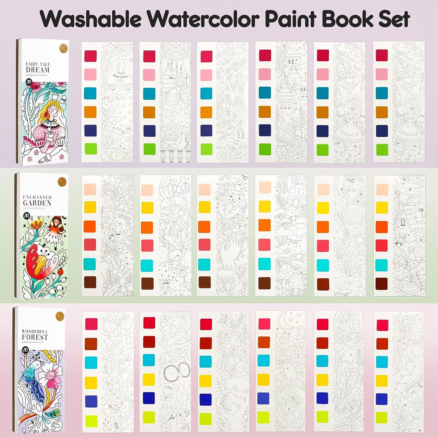 3Pack Watercolor Paint Coloring Books, 20-Page Pocket Painting Pictures Drawing Arts Set Graducation Birthday Gifts for Toddlers
