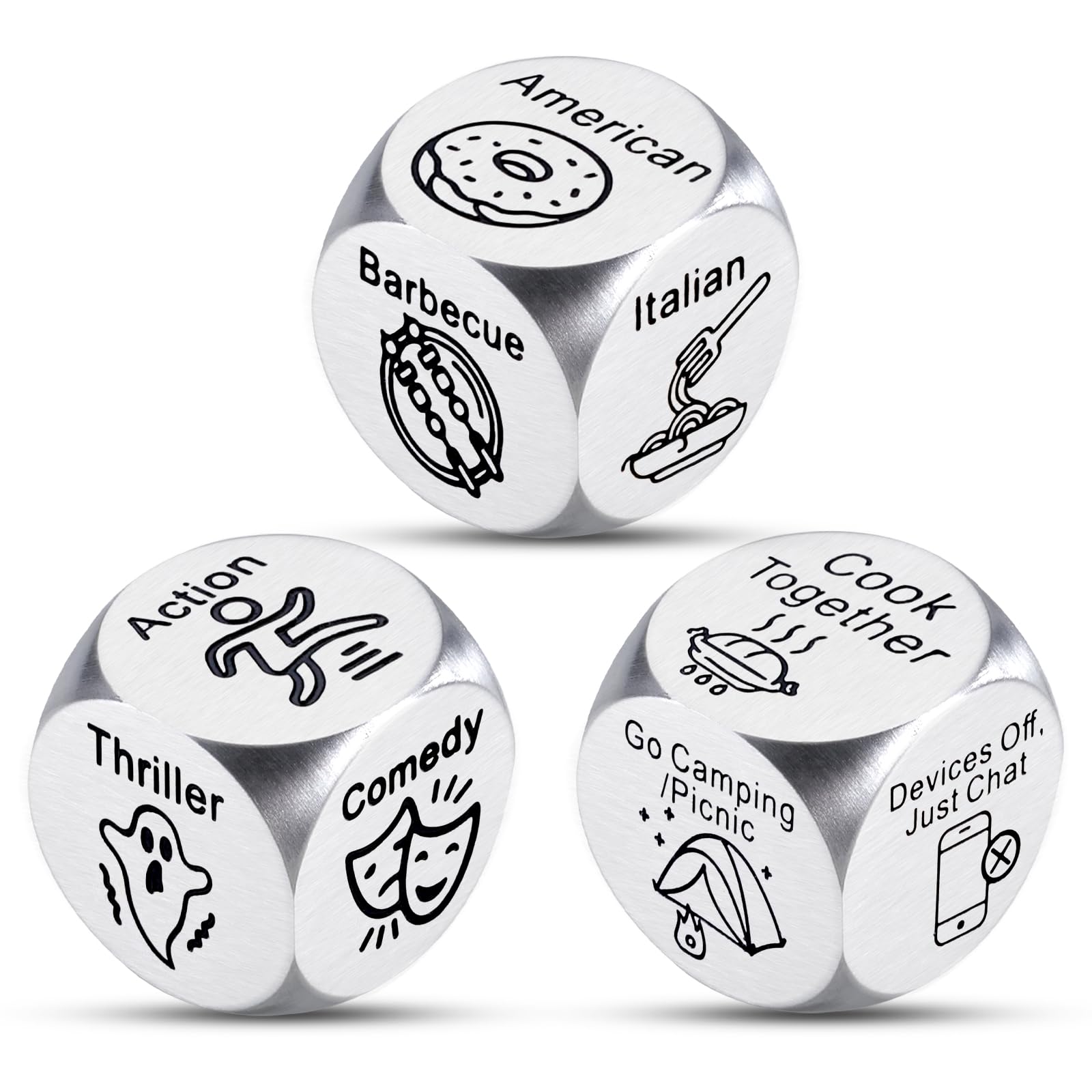 - Q: What are the main features of the 3PCS Food Dice? A: The 3PCS Food Dice include various food choices, movie options, and activity suggestions to help couples decide what to eat or do on date nights or special occasions. They are perfect for Valentine's Day, anniversaries, or any time you want to add spontaneity to your date night.