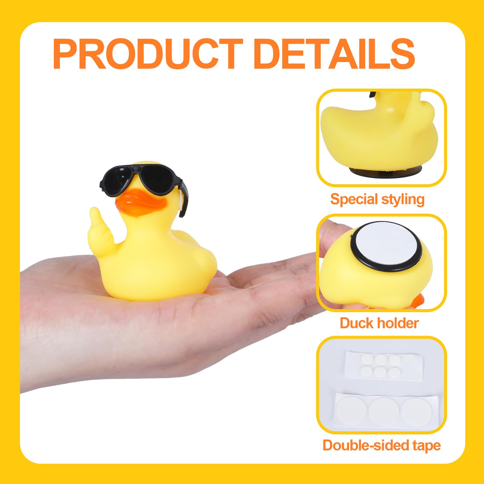 3PCS Thumbs Up Rubber Ducks with Duck Holder,Thumbs Up Duck with Sunglasses and Gold Chains Car Dashboard Decoration Party Favor