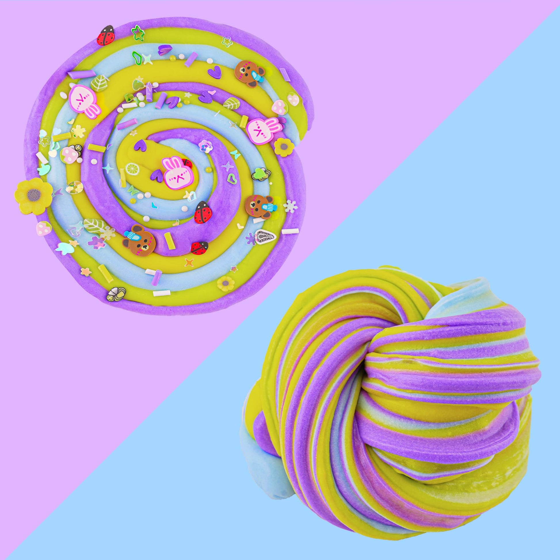 - Q: What is included in the Easter Basket Stuffers pack? A: The Easter Basket Stuffers pack includes 4 jars of butter slime, each holding 60ml, totaling 240ml. It features 4 colors of butter slime: green, blue, purple, and yellow, along with adorable Easter Bunny slime charms such as a carousel charm, hot air balloon charm, teacup charm, and mini train charm.