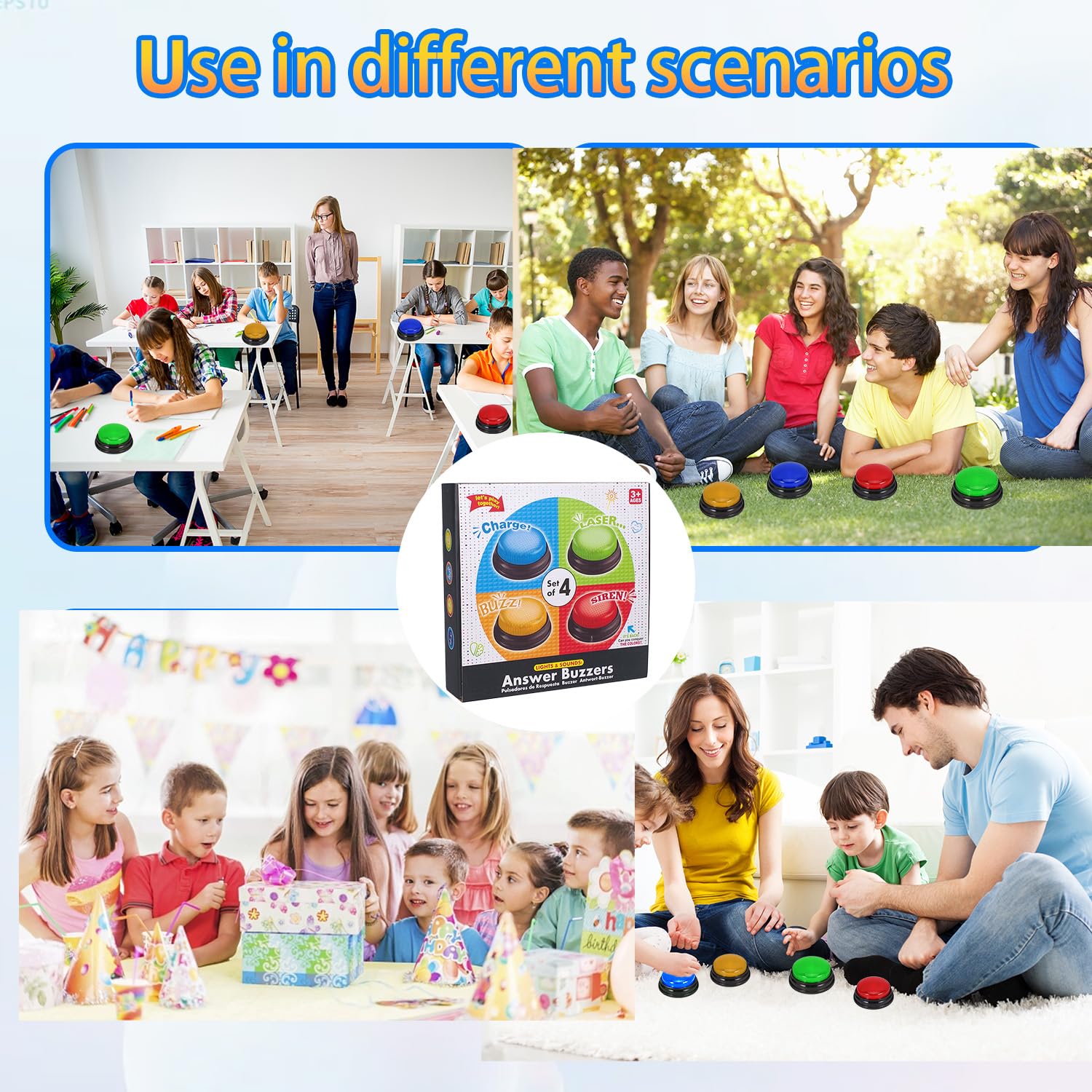 - Q: What is the age range suitable for these trivia game buzzers? A: These buzzers are recommended as fun gifts for kids aged 3-10, making them ideal for family game nights, educational activities, and interactive learning.