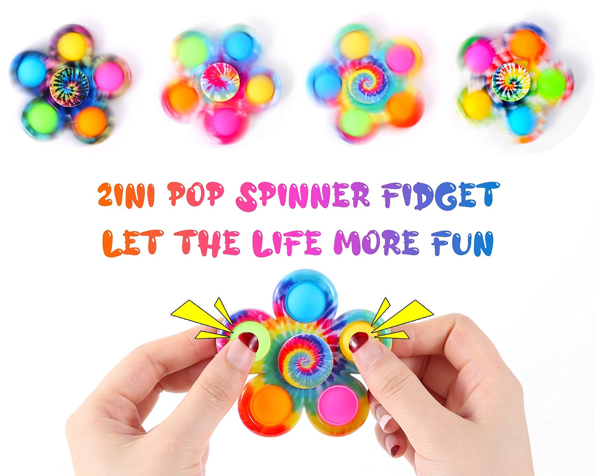 • Q: What are the benefits of using fidget spinners for stress relief? A: Fidget spinners are designed to help relieve stress and anxiety by providing a tactile and sensory experience. They can improve focus and concentration, making them particularly beneficial for individuals with ADHD or autism. The repetitive motion and satisfying 'pop' sounds can create a calming effect, allowing users to manage stress more effectively.