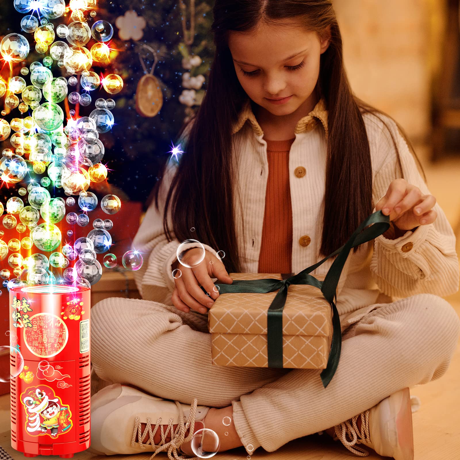 13 Holes bubble machine automatic bubble machine with led lights and Switched sound portable electrical bubble blower maker machine toys with 4 x 80 ml Bubble Solution for parties wedding christmas new year - 4 pcs