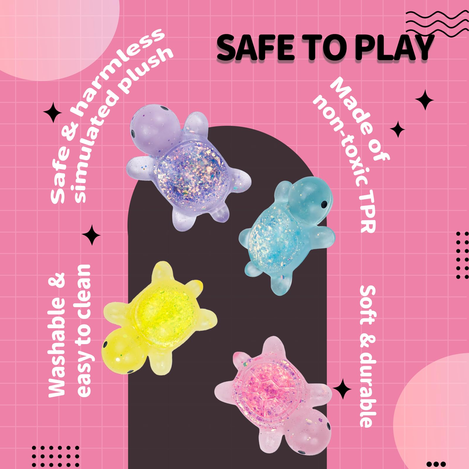 4 Pcs Taba Squishy Cute Animals Toys - Turtle Stress Relief Fidget Sensory Toys Soft Silicone Squeeze Kits for Teens Children mature-themed (Purple Blue Red Yellow)